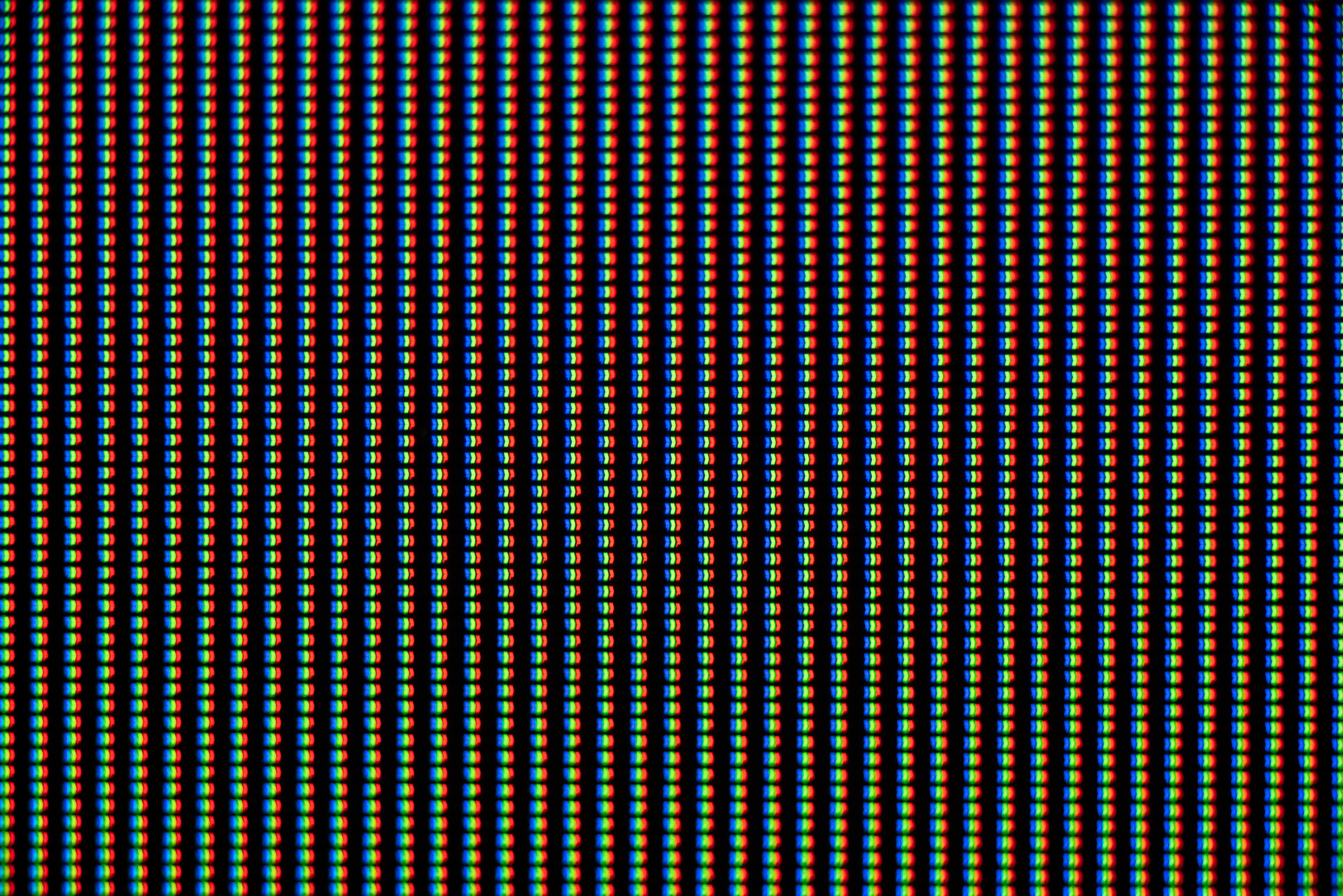 There are notches in some blue and red pixels. Also, it uses a BGR subpixel layout, which doesn't affect picture quality, but can affect text clarity, which you can read about here.