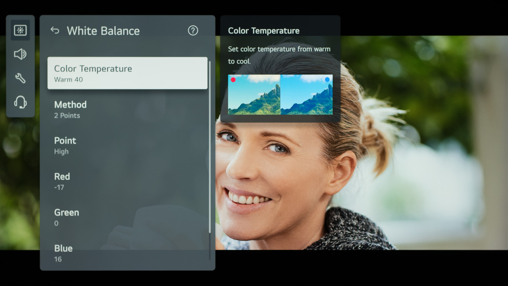 The following are the results of calibrating the white balance of our unit to 6500K in HDR. They are provided for reference and shouldn't be copied as the calibration values vary per individual unit, even for the same model and size as the TV we reviewed, due to manufacturing tolerances. If you want to try them, you'll need to enter all values shown, as all of them are active at the same time. If you end up with worse picture quality, simply reset them to the default values.