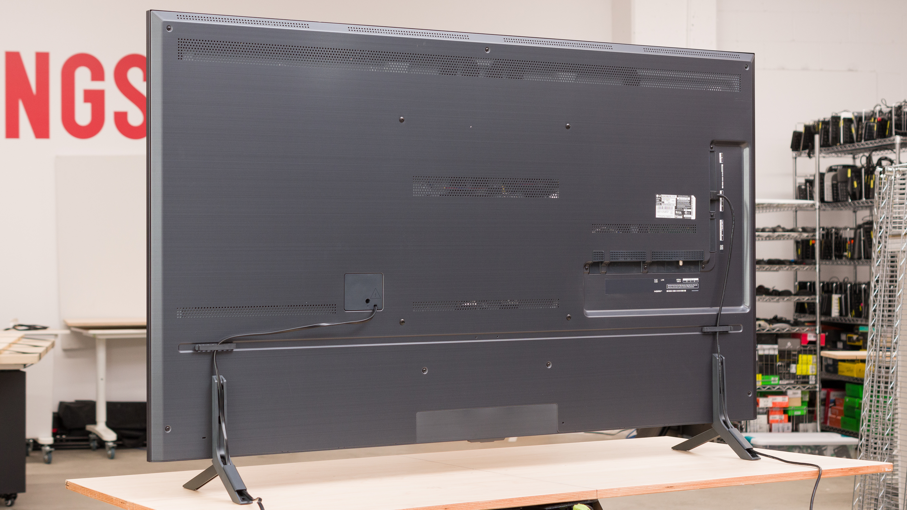 The back of the TV is very plain. The inputs are side-facing on the left of the TV, and they're easy to access if the TV is wall-mounted. You can route cables through two clips on the back of the TV that lead to tracks in the stands for cable management.