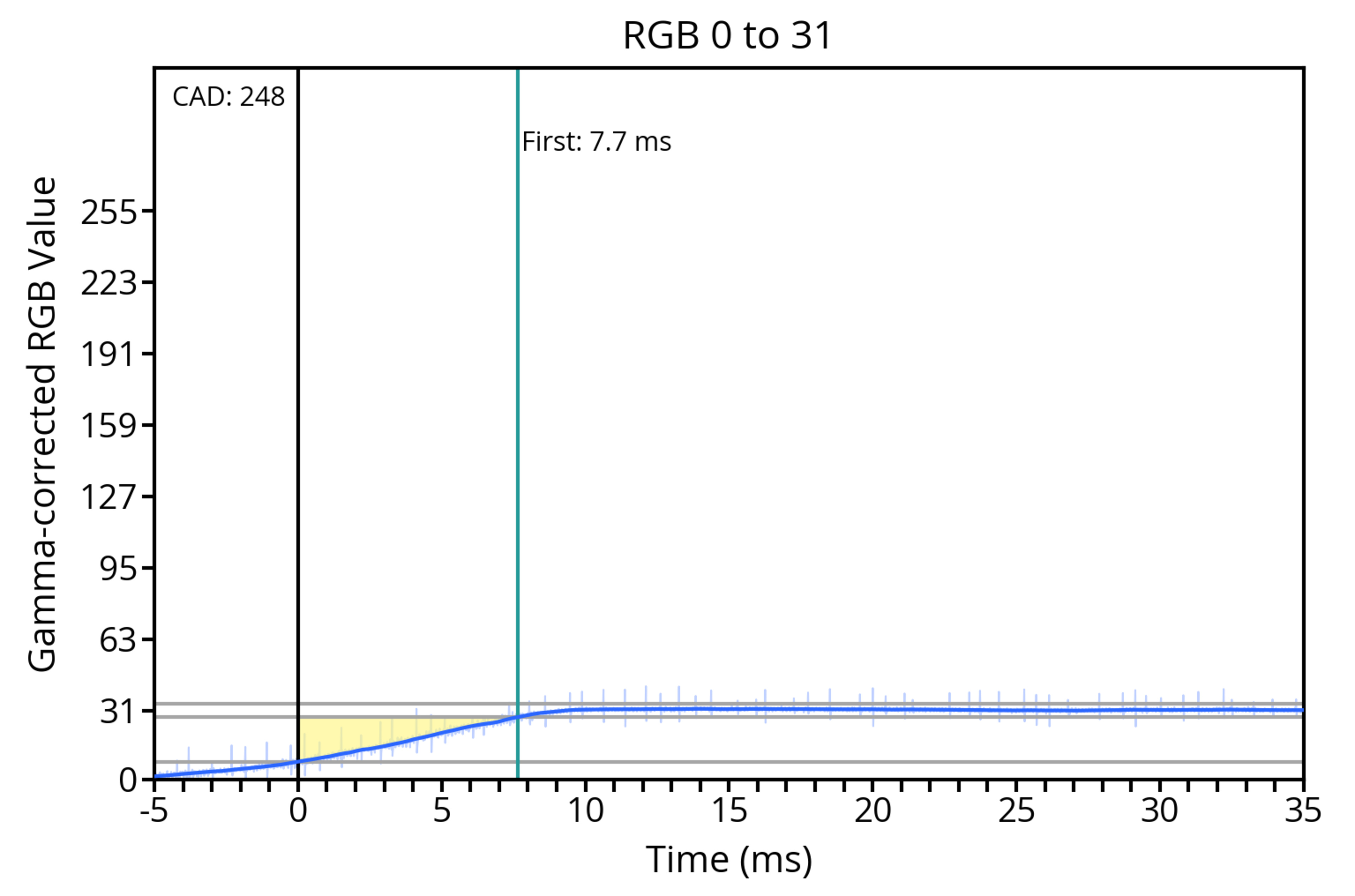 The TV's CAD at the max refresh rate of 144Hz is just okay. It performs best in brighter scenes, and most of those transitions are fairly quick with no noticeable overshoot and little blur. It struggles more coming in or out of shadow details, and those transitions are very slow, causing more noticeable blur.