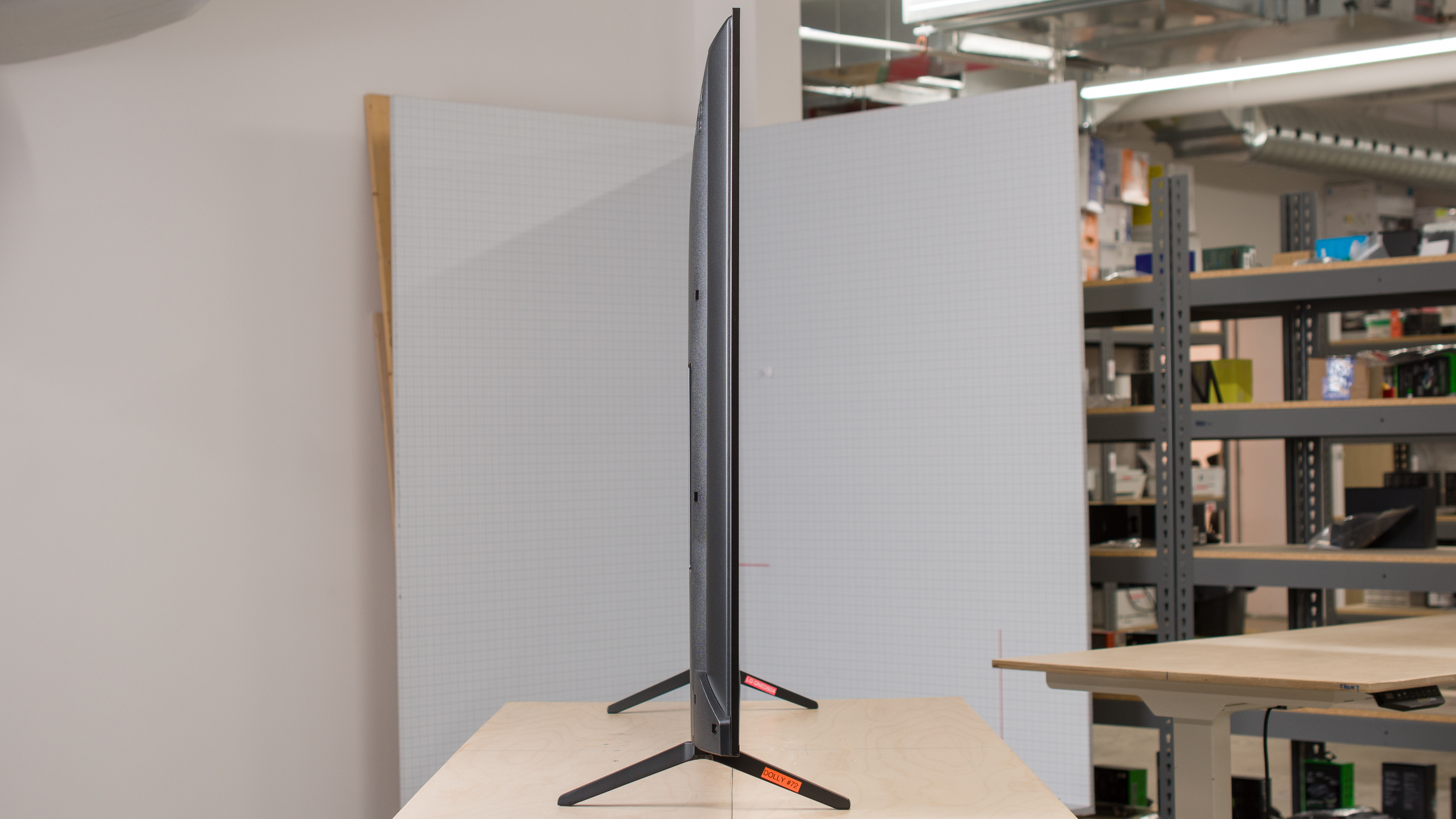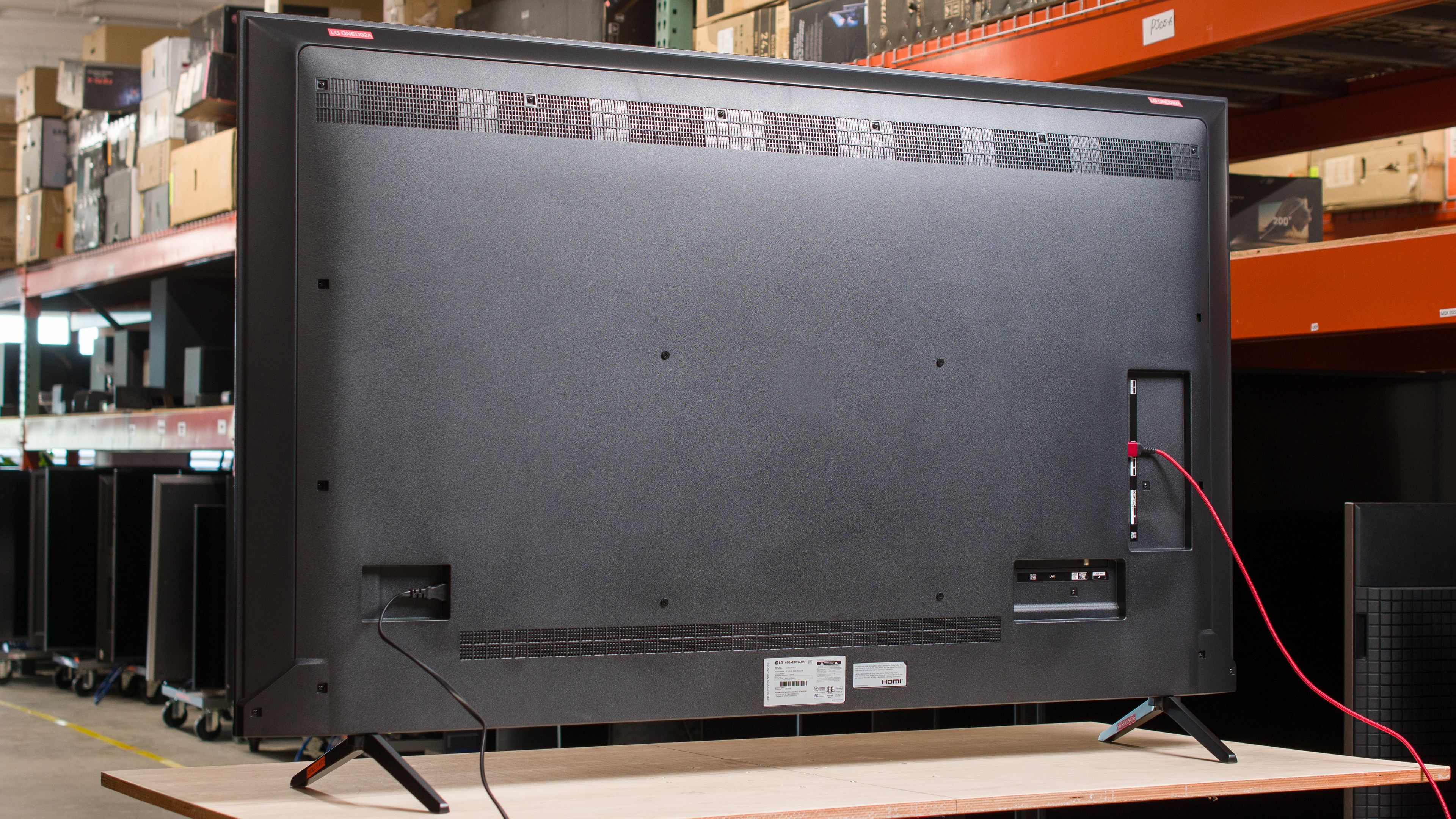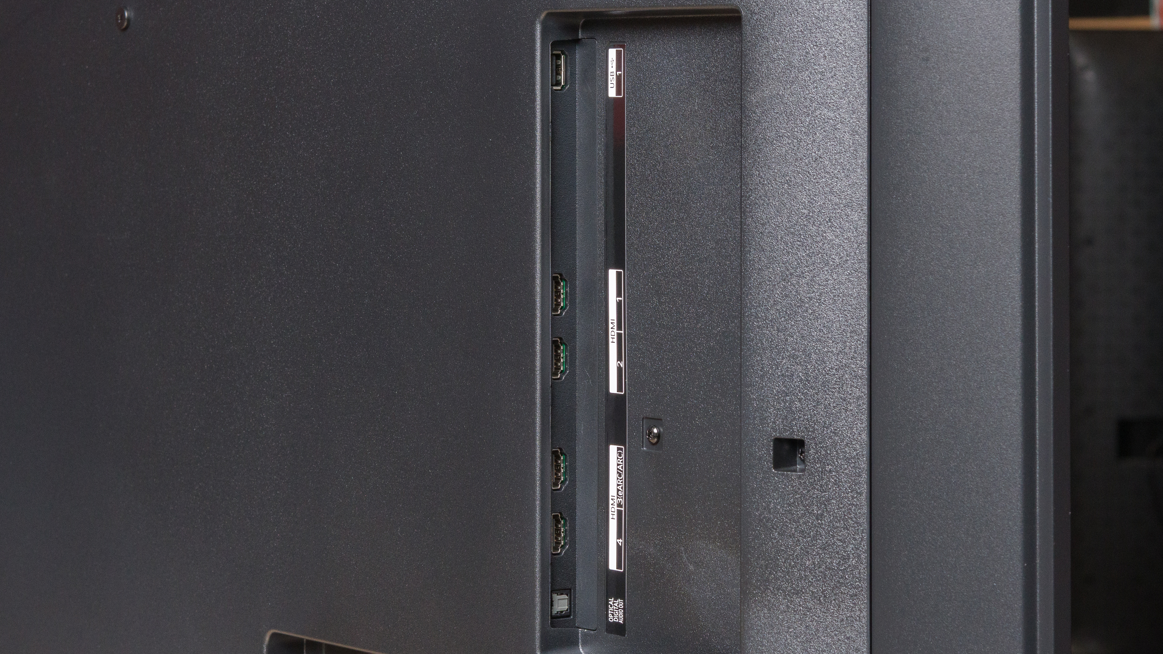 The back of the TV has a basic, less-premium look to it. The inputs are housed in two sections on the left side of the TV (when looking at it from the front). As they're inset into the TV, they're a bit hard to reach when the TV is wall-mounted, but at least they face down or to the sides, so you won't need any angle adapters for HDMI cables. Unfortunately, there's nothing to help with cable management.
