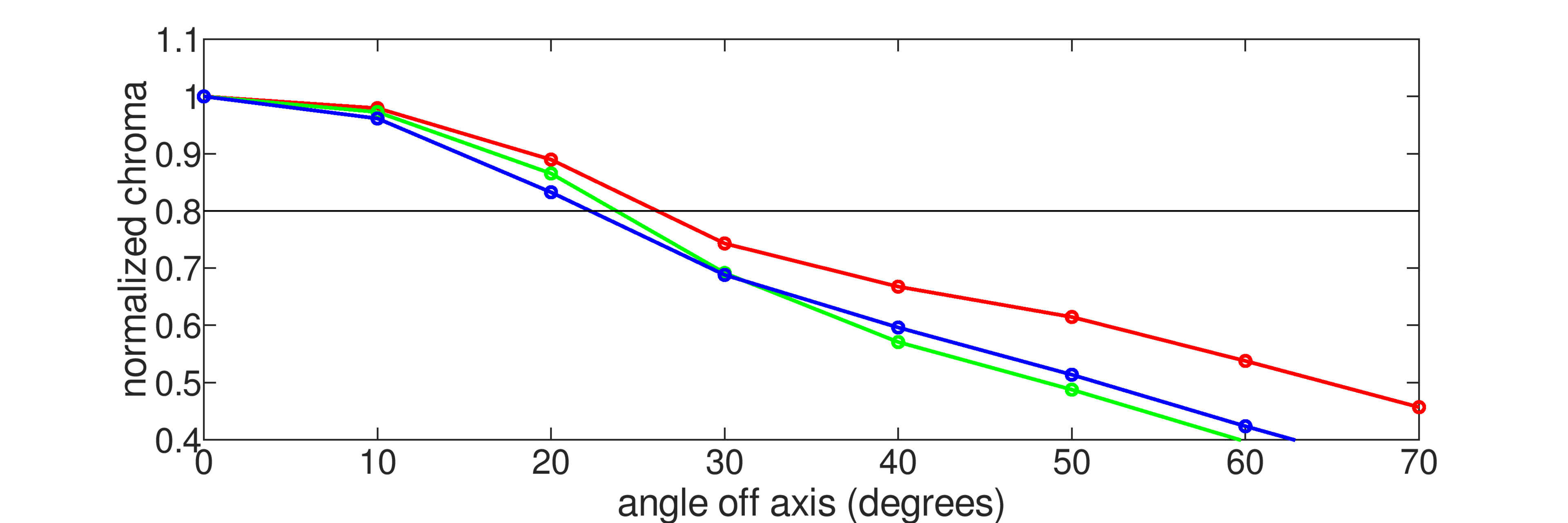 The perceived color saturation in a bright room is very good. Ambient light has almost no impact on color saturation.