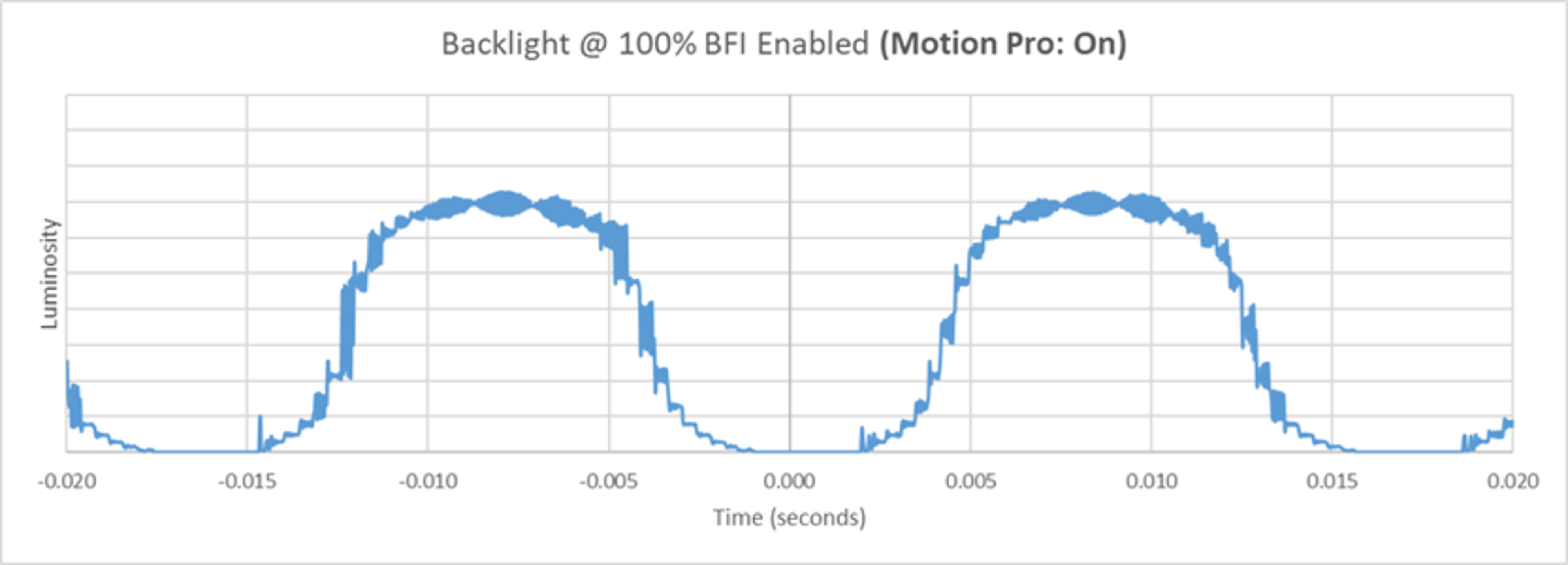 The TV has an optional backlight strobing feature, commonly known as black frame insertion. It's supported at both 60 and 120Hz, and the pulse timing is pretty good, so unlike many other TVs, there's no apparent image duplication.