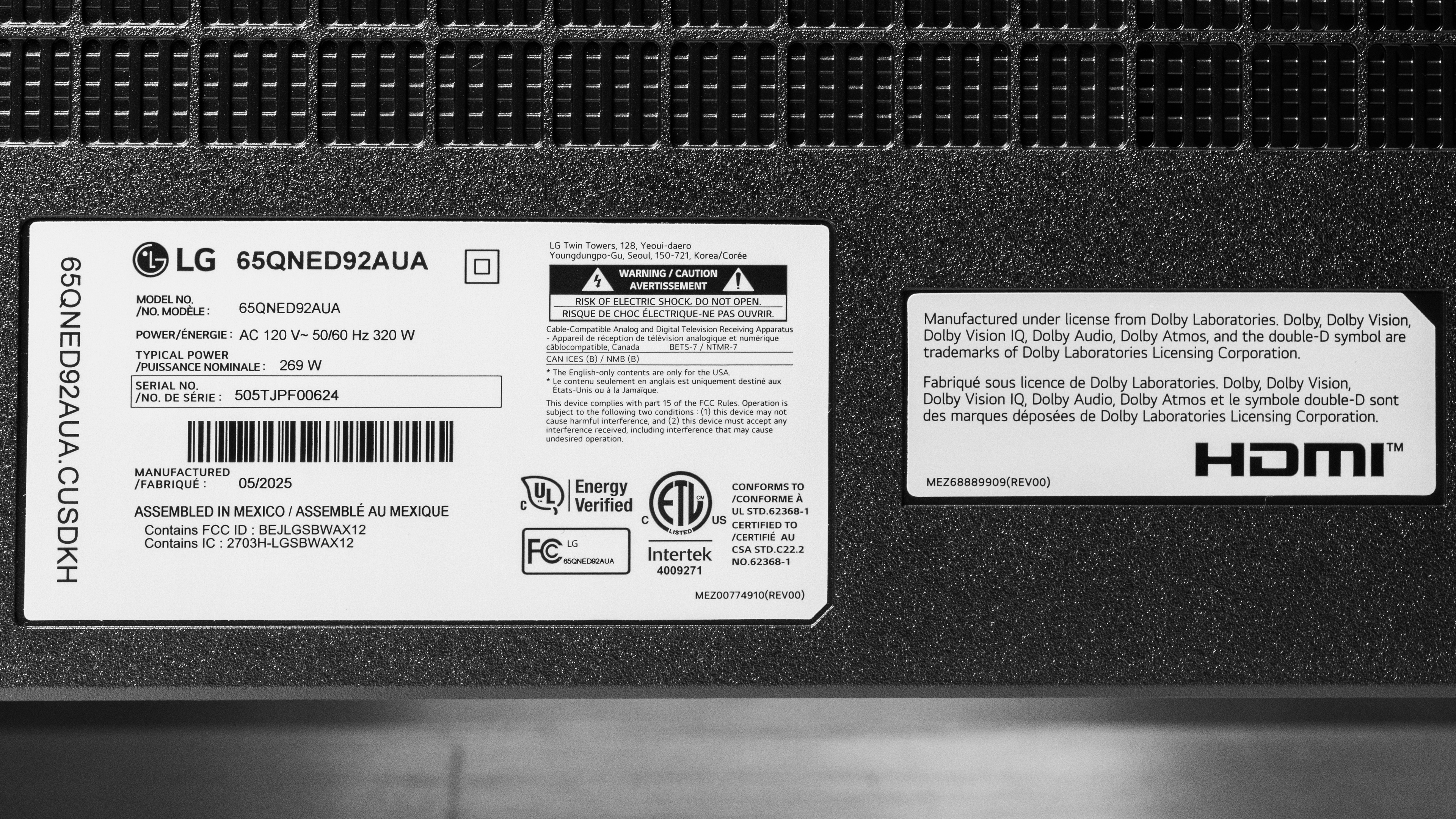 We bought and tested the 65-inch LG QNED92A, and the results are also valid for the 75 and 85-inch models. In Europe, it's known as the LG QNED93A, and we expect most of our results to be valid for that model as well, but it has a center-mounted stand.