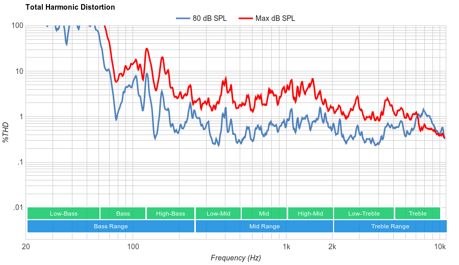 The SJ8500's distortion, while better than average is nothing remarkable. THD is notably decent at high volumes, which is unusual.