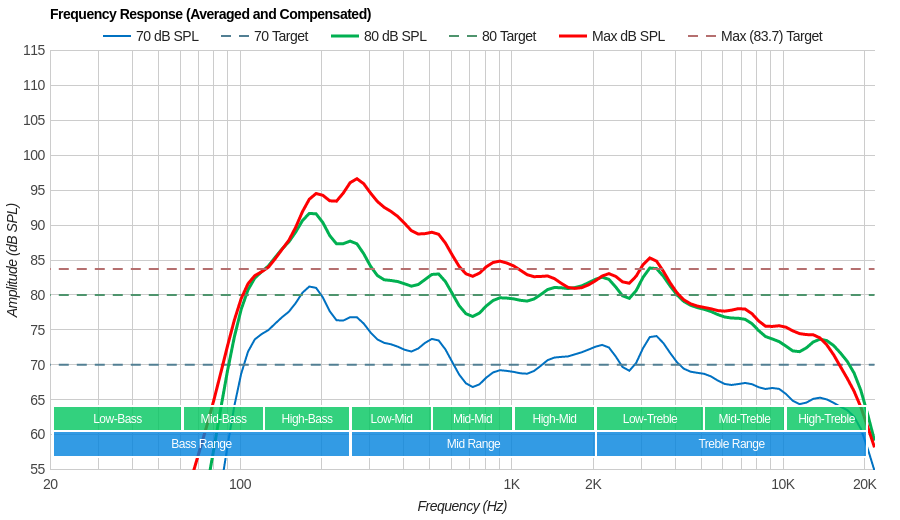 The LG UK6300 has a below-average frequency response performance. LFE (low-frequency extension) is at 100Hz, which is sub-par. This means that this TV will have a full and warm sound, but not a lot body or punch, and no thump or rumble to its bass either. The response above the LFE is well-balanced for the most part, which results in clear dialogs but they may lack some airiness. Also, this TV doesn't get very loud and produces considerable pumping and compression artifacts under heavy loads. Additionally, since this TV doesn't have a room correction system, it wasn't able to remove the mode of our test room which occur around 200Hz.