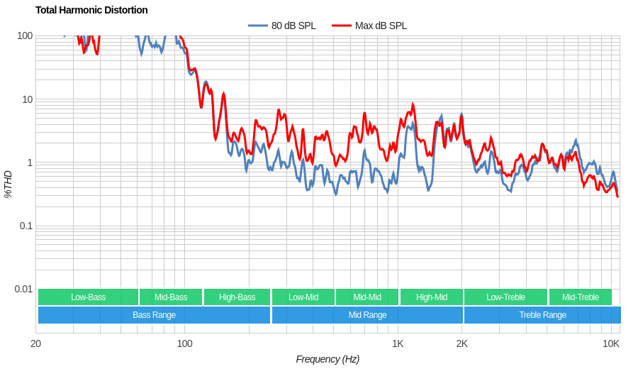 The distortion performance of the LG UK6300 is decent. The overall amount of harmonic distortion is within decent limits, and there is not big jump in THD under maximum loudness either, but this TV doesn't get very loud.