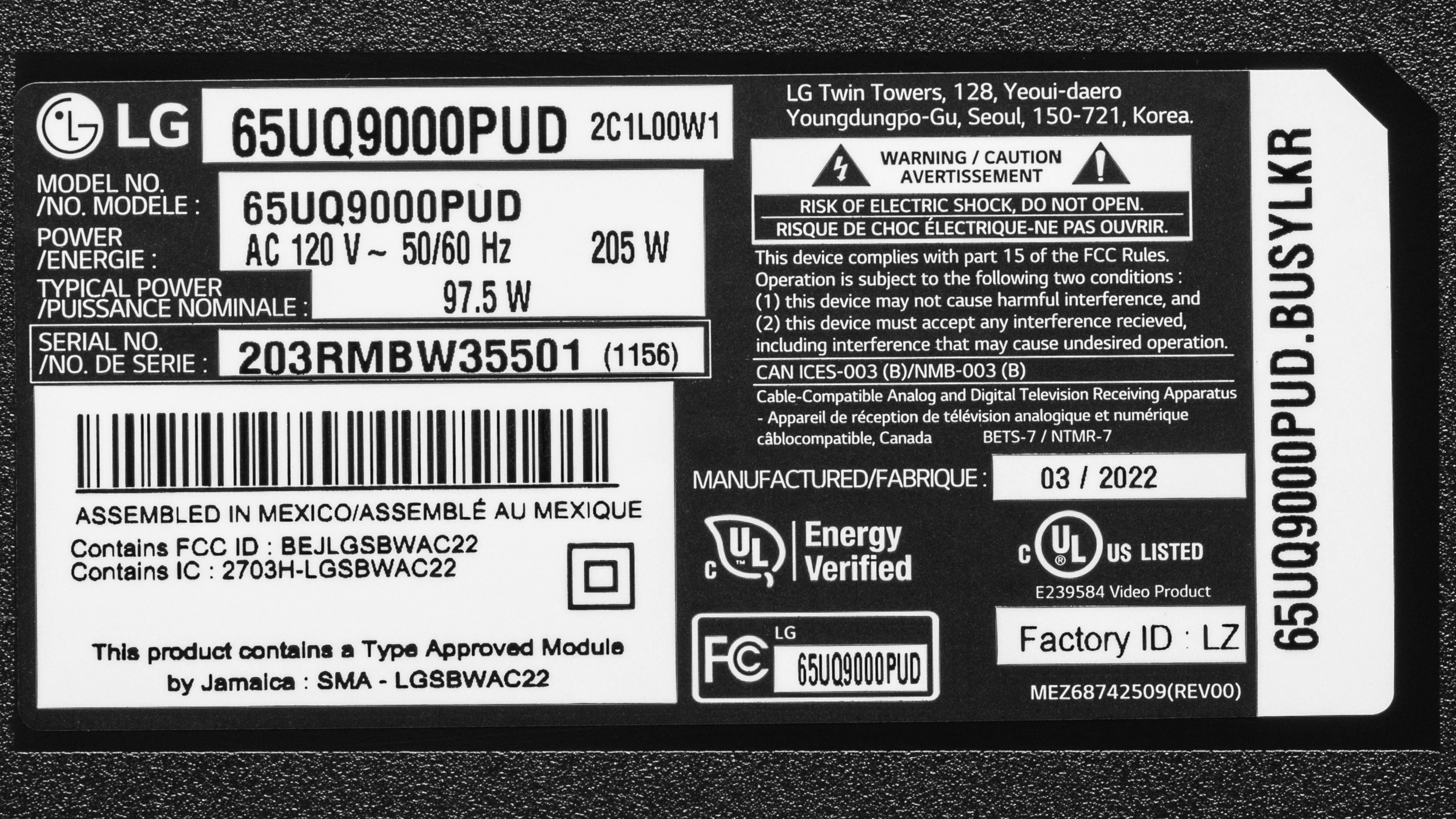 We tested the 65-inch LG UQ9000 (65UQ9000PUD), but it's also available in 43, 50, 55, 70 and 75-inch model sizes. Note that the last three letters in the model number (PUD in this case) vary between retailers and individual regions, but there's no difference in performance. There are some differences in performance between sizes, as the 50-inch and 70-inch models use different panel types.
