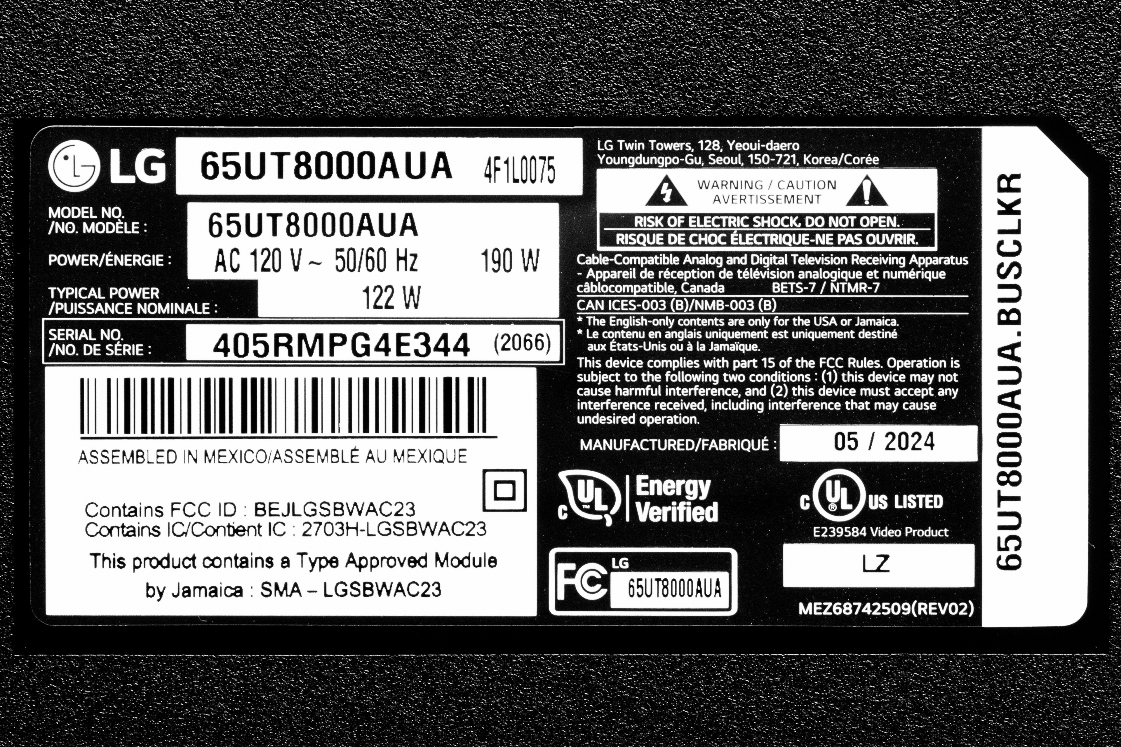 We bought and tested the 65-inch LG UT8000 (65UT8000AUA), which is also called the LG UT80 for short. It's also available in 43, 50, 55, 70, 75, and 86-inch sizes. The last three letters in the model number (AUA in this case) vary between retailers and individual regions, but there's no difference in performance.
