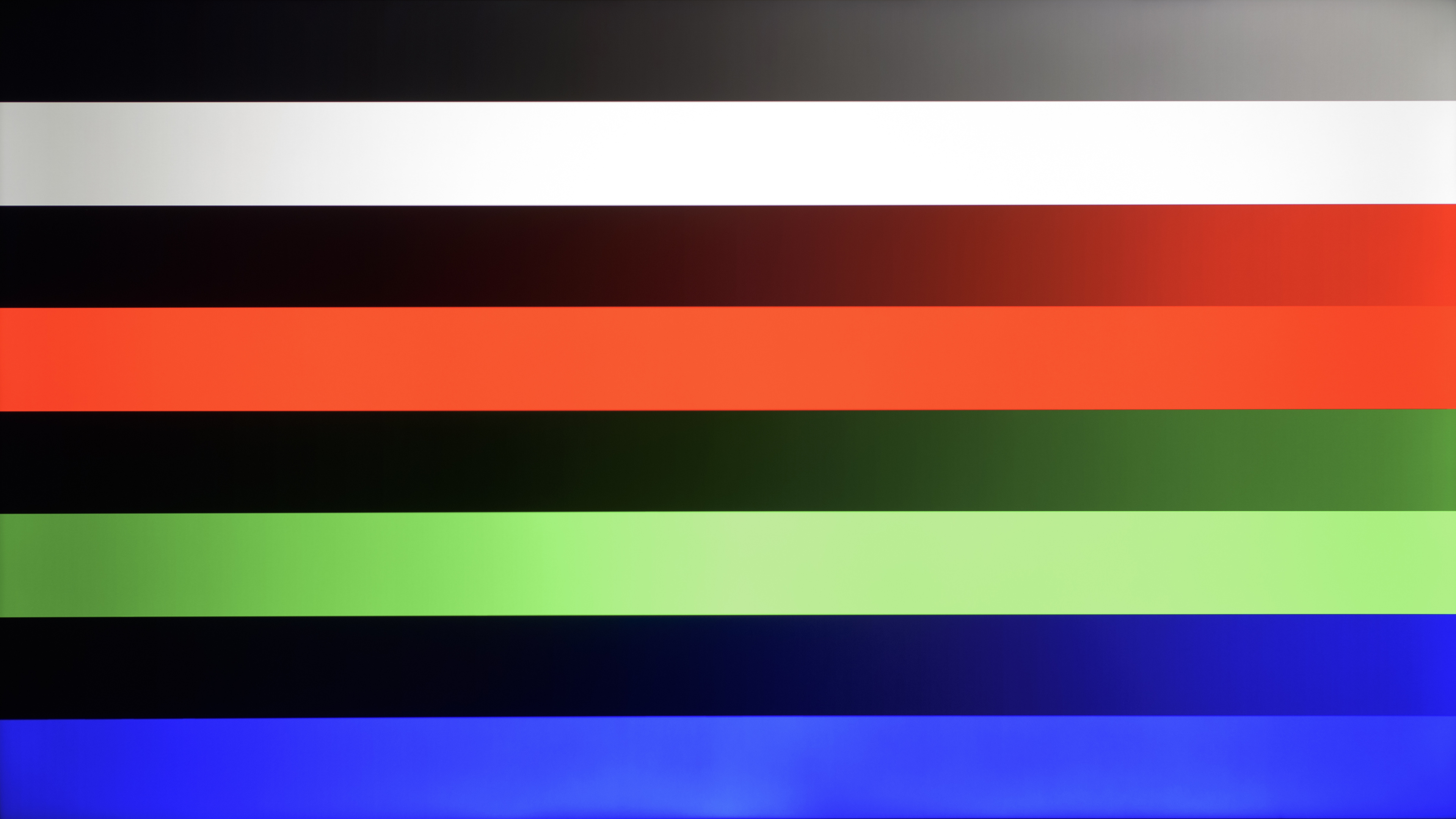 The HDR gradient handling on this TV is good overall, but there are a few issues. There's noticeable banding in dark greens, and reds are limited by the TV's color gamut. The 50%-100% row is almost the same shade of red the entire length of the band.