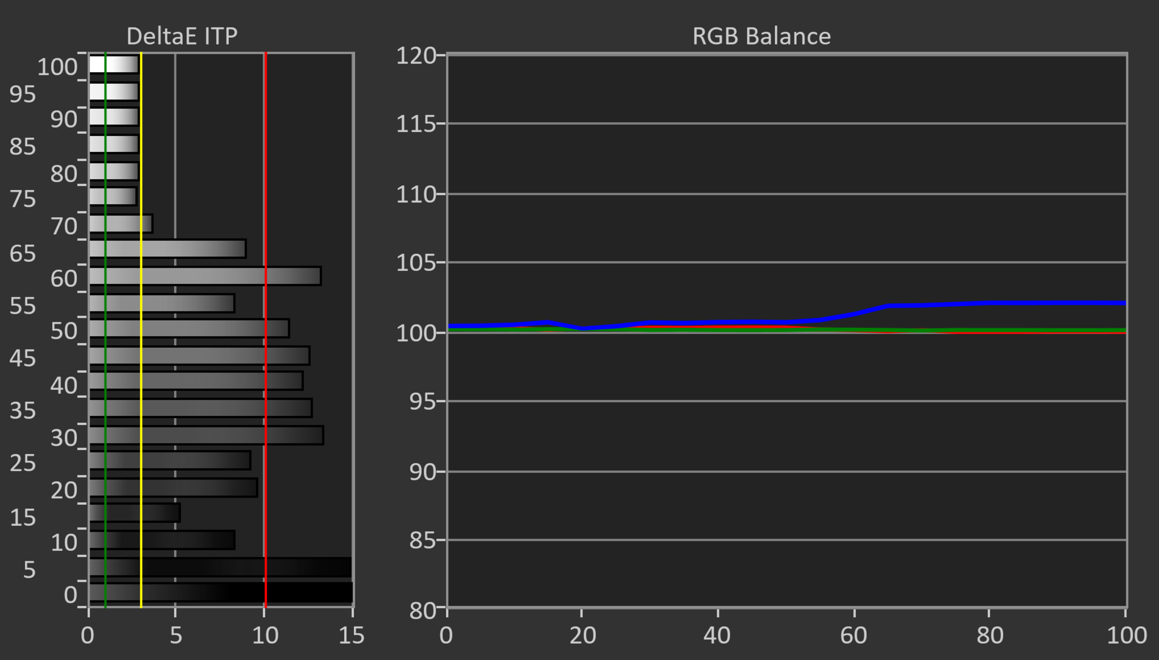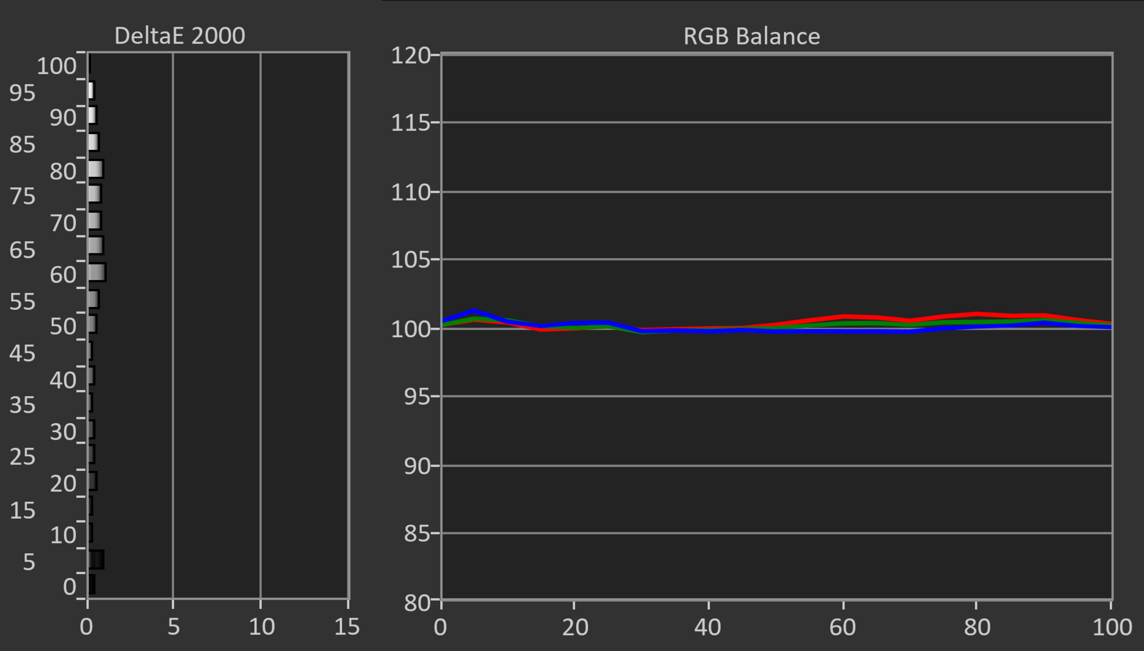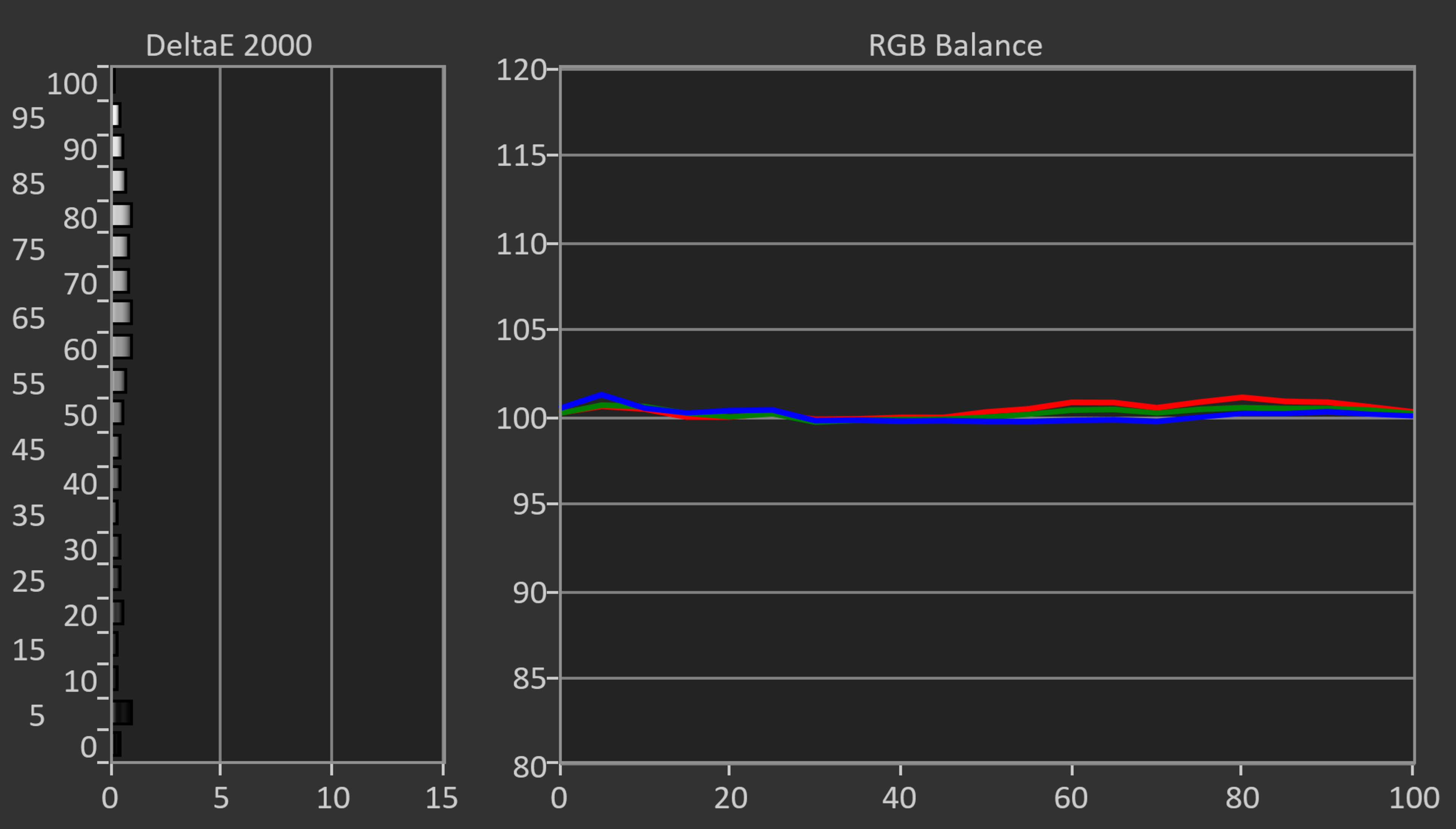 Unfortunately, this TV only offers a basic 1-point white balance calibration, and any changes to it made the accuracy worse on our unit.