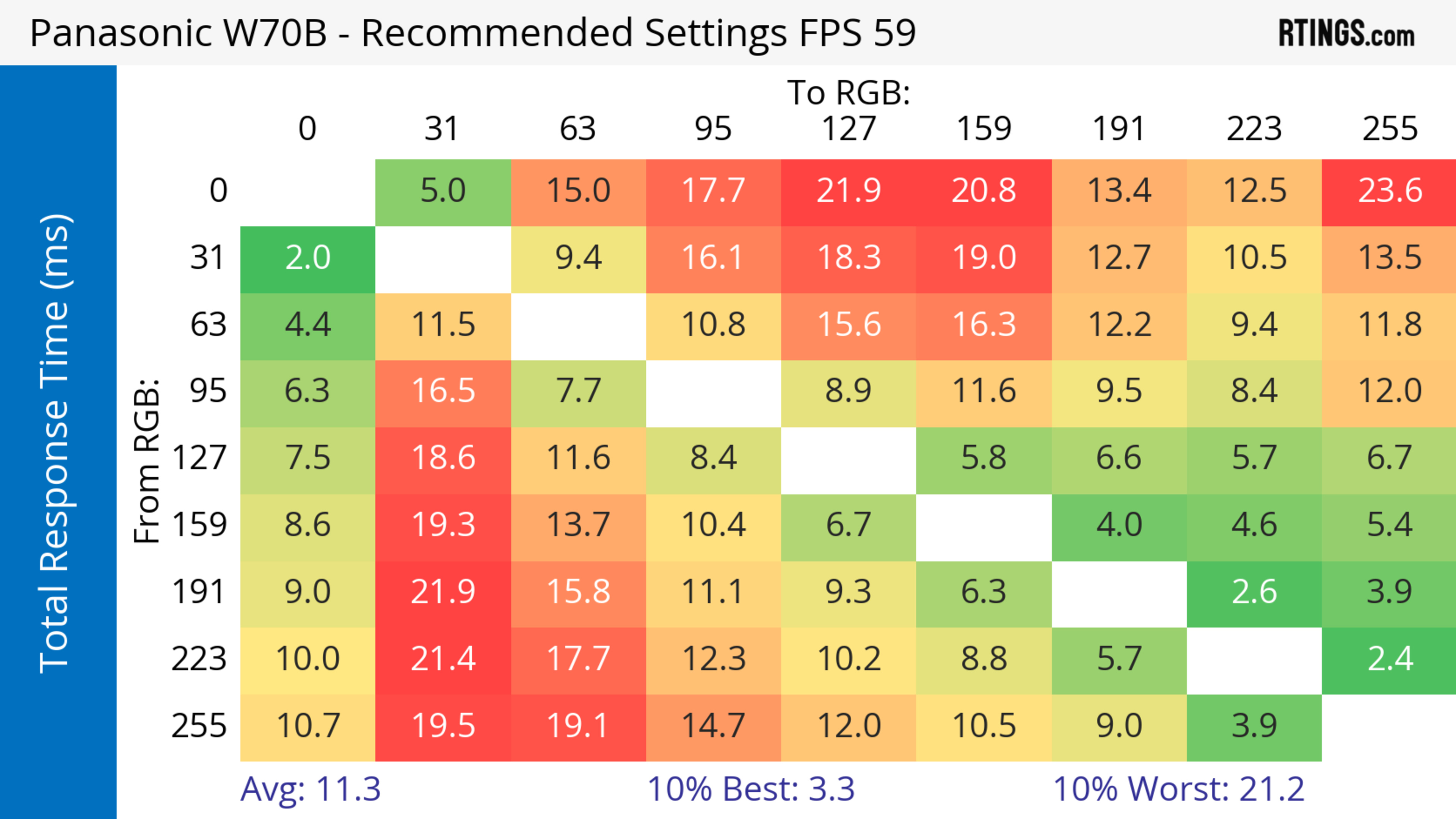 We bought and tested the 65-inch Panasonic W70B, and these results are also valid for the 43, 50, 55, 70, 75, and 85-inch models. There are no variants of this TV, and all sizes perform the same.