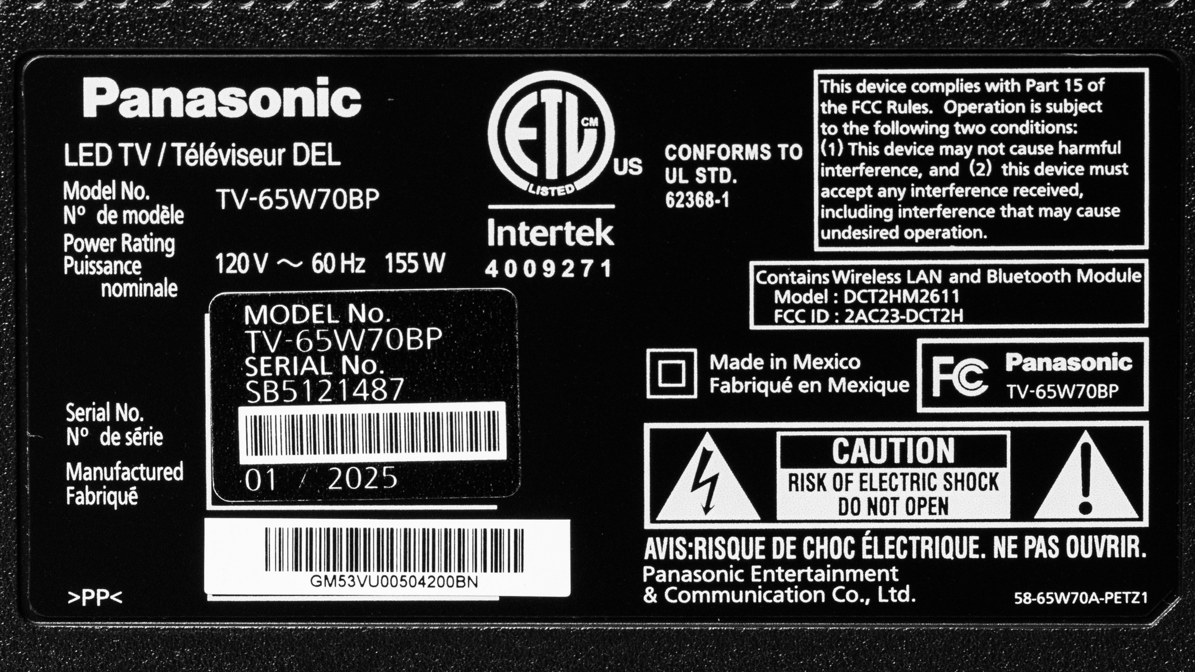 The Panasonic W70B is a new entry-level TV released as part of Panasonic's 2025 U.S. lineup. It's a very basic TV, with a 60Hz refresh rate and very few additional features. It doesn't have local dimming or any advanced gaming features like VRR or HDMI 2.1. It runs the Fire TV smart interface, which has a great selection of apps and offers some customization. We bought and tested the 65-inch model, but it's also available in 43, 50, 55, 70, 75, and 85-inch models.
