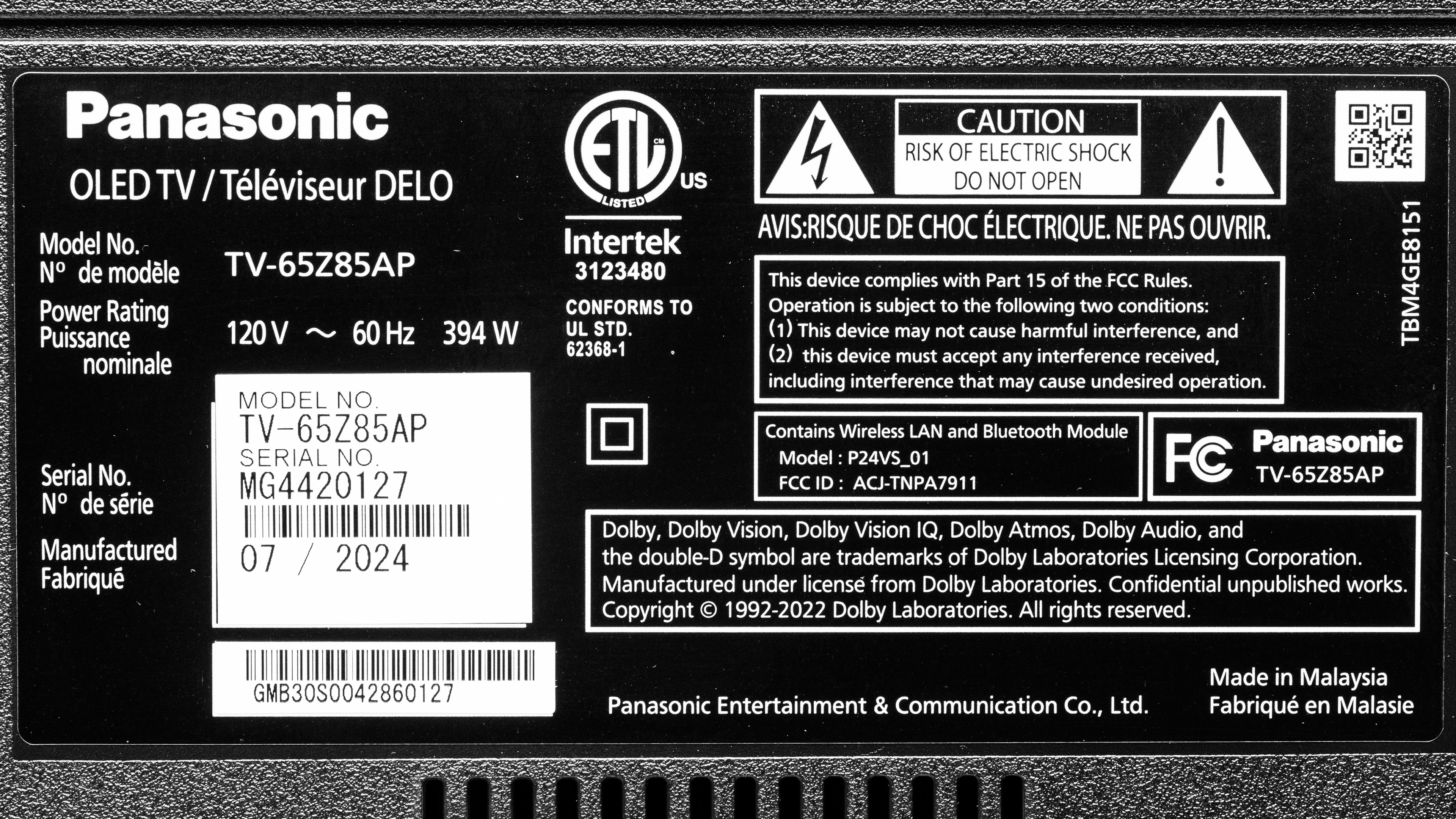 We bought and tested the 65-inch Panasonic Z85A (65Z85AP), and these results are also valid for the 55-inch model (55Z85AP). There are no known variants of the TV, so our results should be valid for all regions, but the inputs vary depending on regional requirements for tuners.