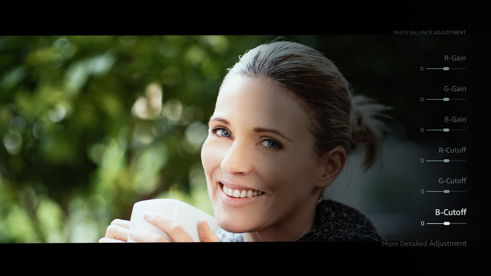 The following are the results of the white balance and colorspace calibration on our unit. They are provided for reference and should not be copied as the calibration values vary per individual unit, even for the same model and size as the TV we reviewed, due to manufacturing tolerances. If you want to try them, you will need to enter all values shown, as all of them are active at the same time. If you end up with worse picture quality, simply reset them to the default values.