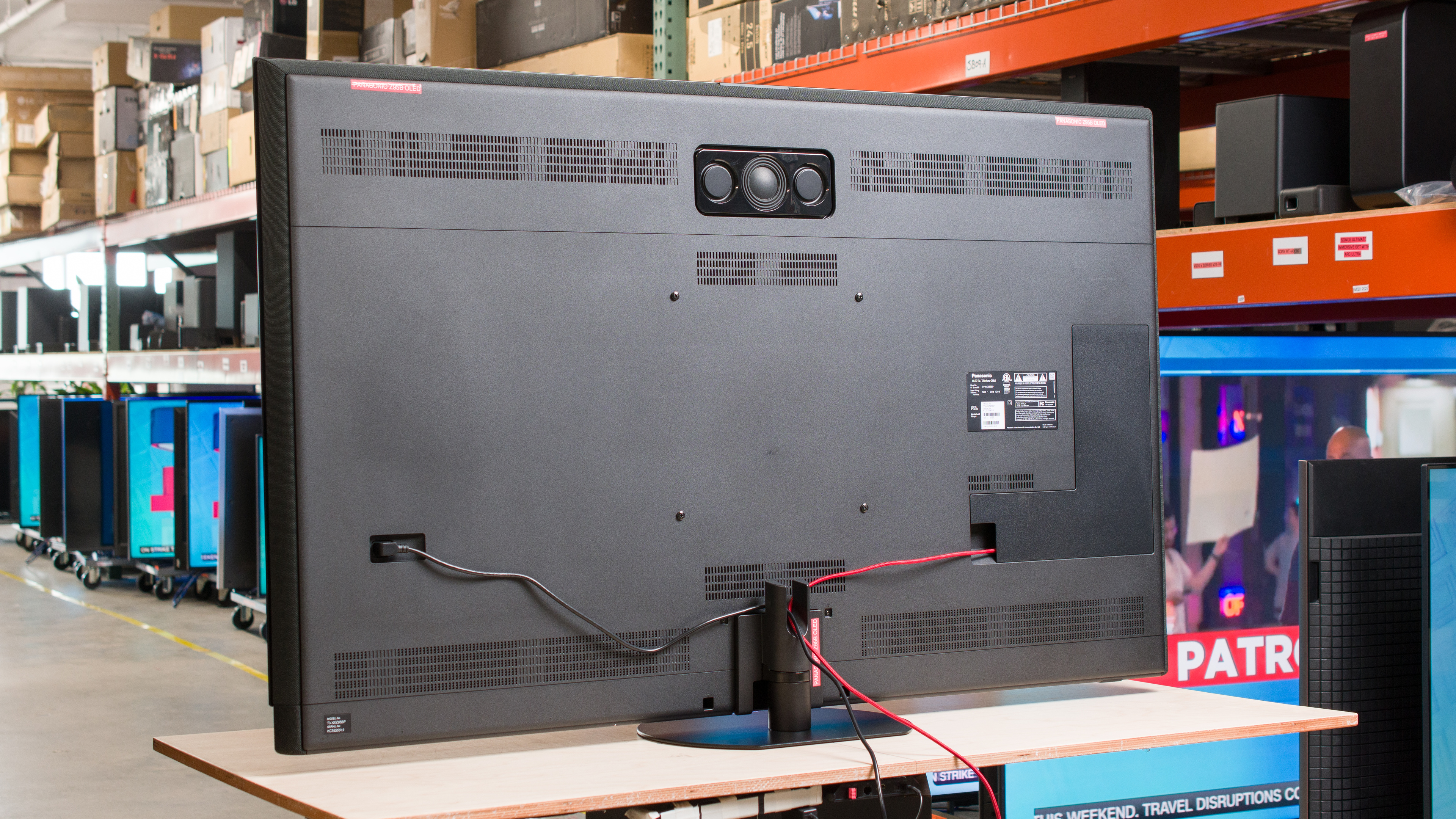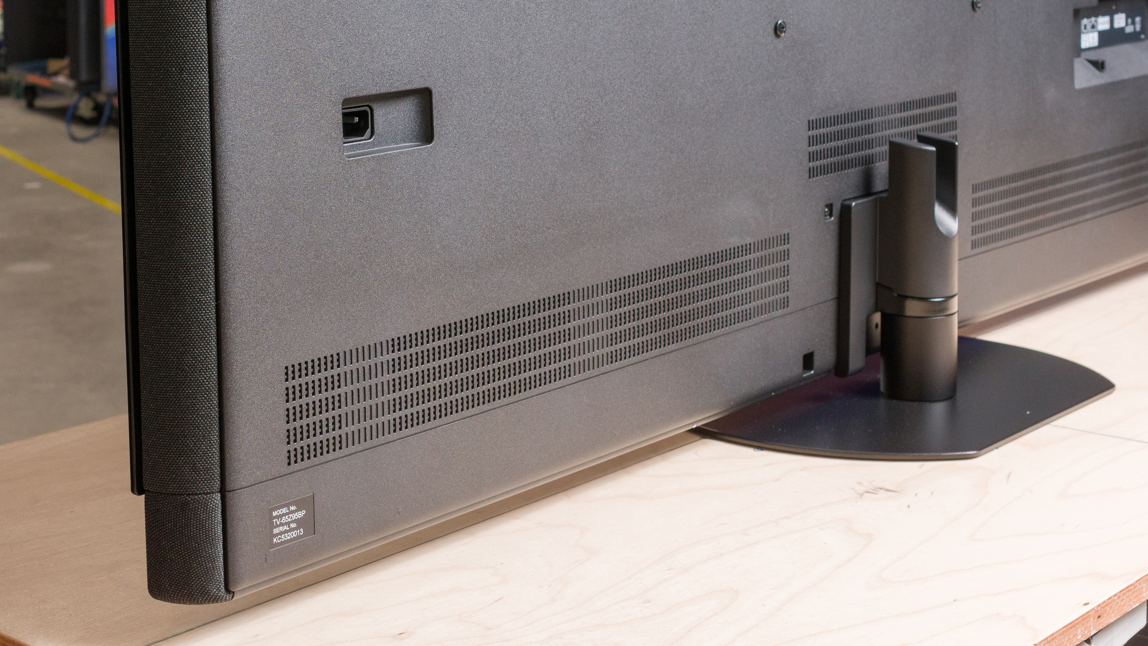 The back section, which houses the inputs and speakers, is quite thick and made of plastic. The inputs are located on the left side of the TV when facing the front, but they're easily accessible even when the TV is wall-mounted. There's a slot on the top of the stand to funnel cables through to help with cable management.