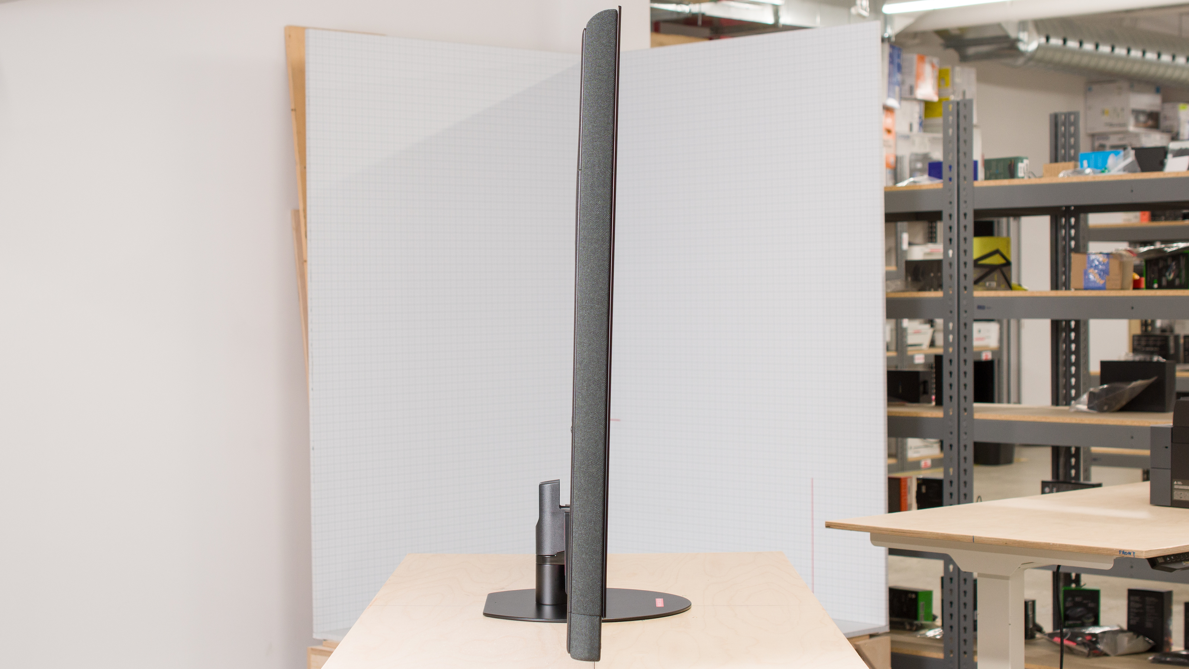 The TV is noticeably thicker than most options on the market. This is due to the inclusion of higher-quality speakers throughout the TV. Our unit leans a bit forward on its stand, but this lean isn't noticeable when watching the TV. However, the severity of the lean varies between different units, so you might end up with more of a lean or less of one.
