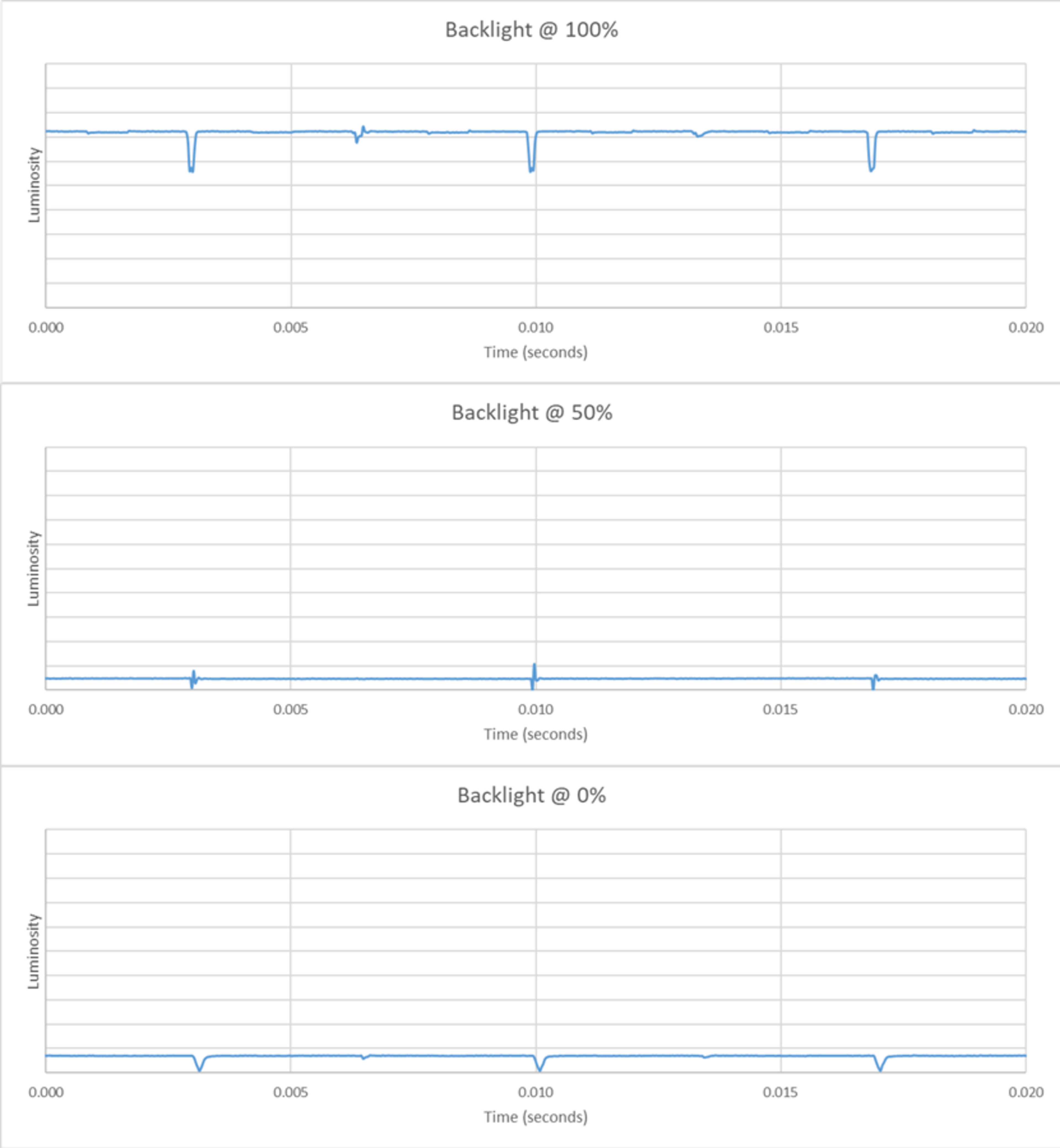 The TV does exhibit flicker-like behavior in low-luminance sections of the screen that resembles pulse amplitude modulation (PAM). This means that bright sections of the screen are flicker-free, but darker sections have very minor flicker present. Fortunately, this isn't noticeable with most real content.