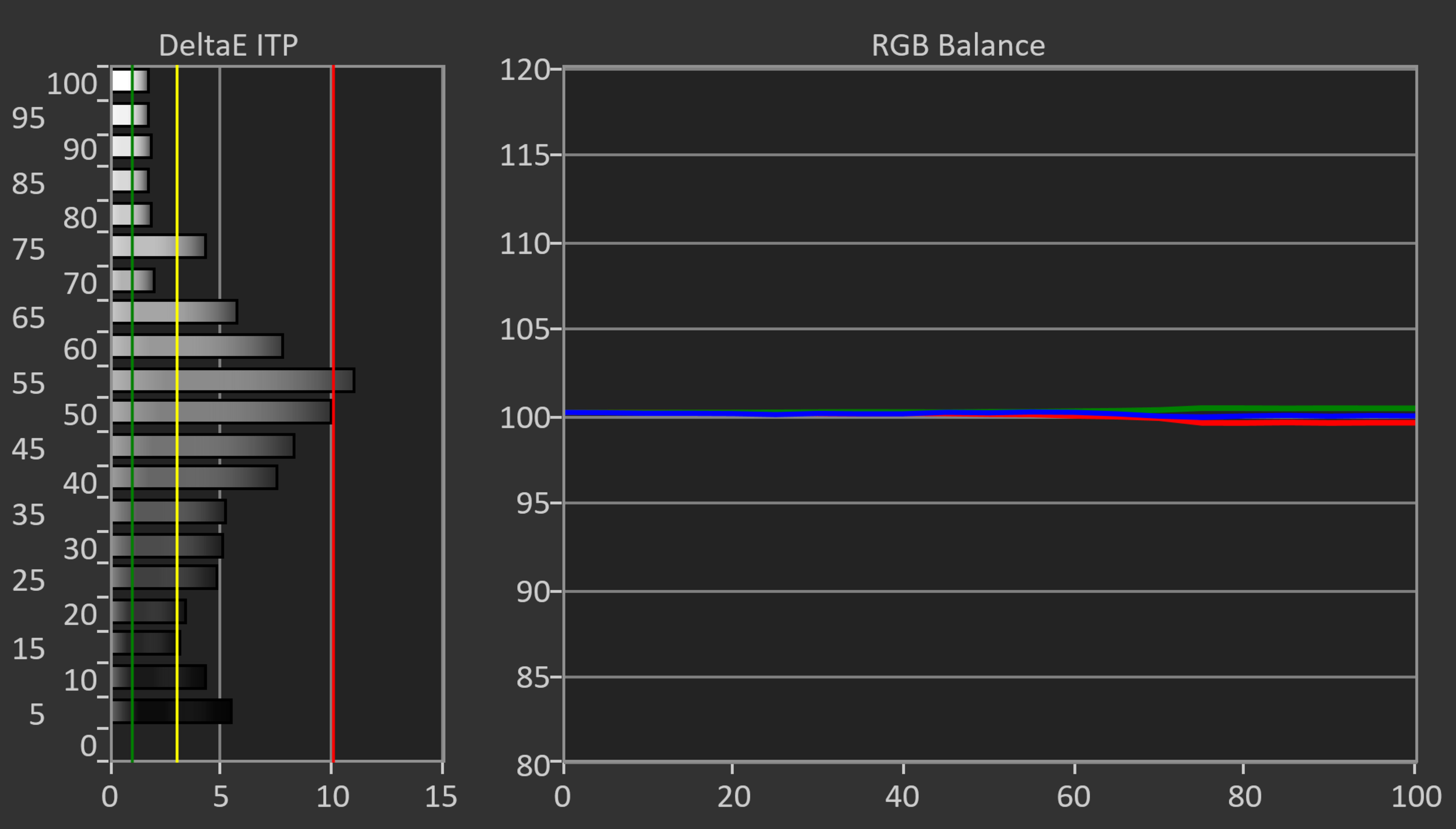 After calibration, the TV has outstanding color accuracy in SDR. The white balance, color temperature, and gamma are essentially perfect, and there are only very minor errors in color accuracy that aren't noticeable.