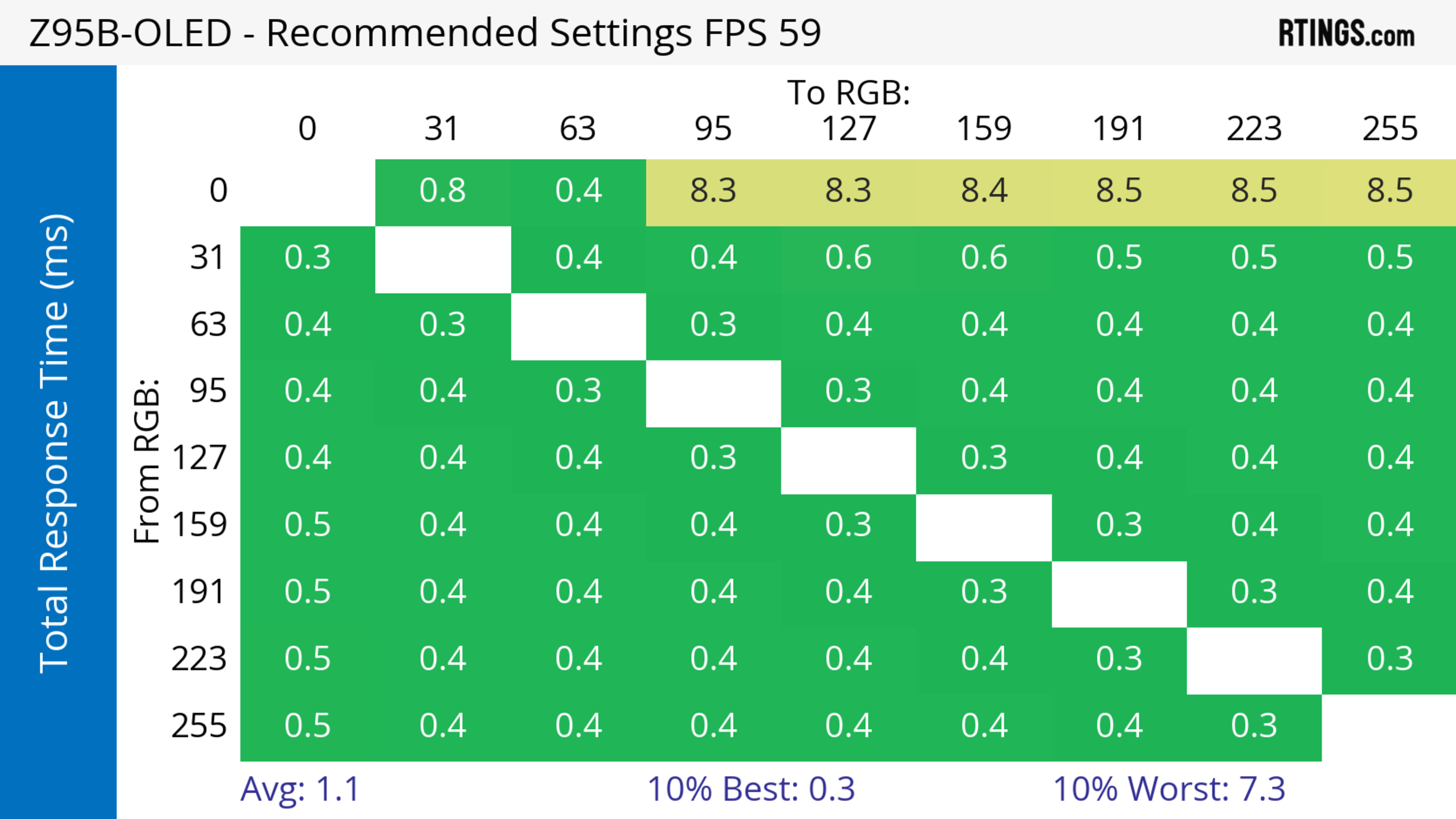 The Panasonic Z95B has outstanding responsiveness while using the True Game picture mode. The TV has HDMI 2.1 bandwidth on two ports, supports 4k @ 144Hz, and is compatible with HDMI Forum VRR, FreeSync, and G-SYNC, giving it great compatibility. It has very low input lag across the board when using the TV's game mode, so gaming feels very responsive. Its nearly instantaneous pixel transitions mean motion is sharp and clear across its refresh range, except for some persistence blur at 60Hz, which is expected.