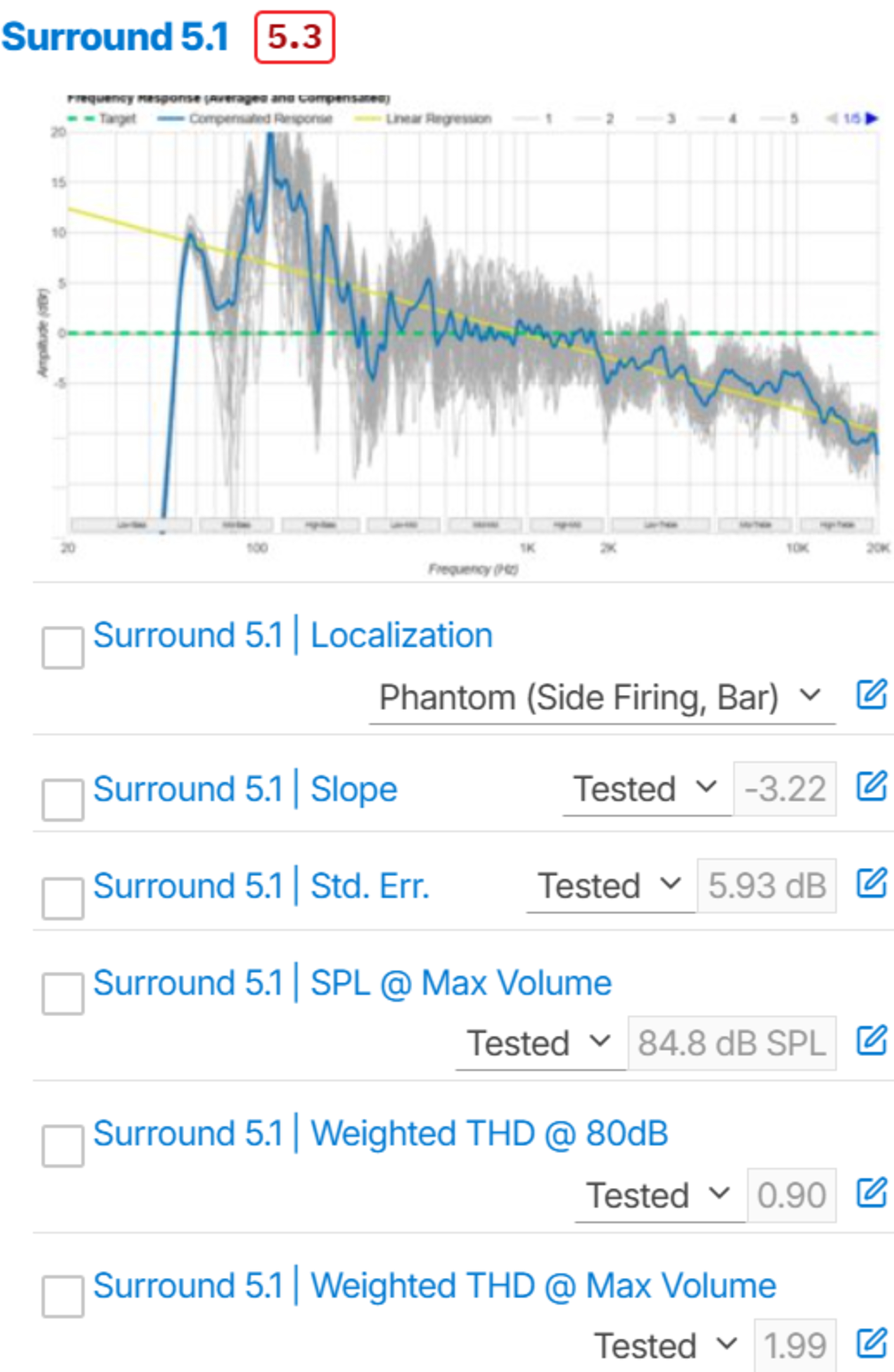 We also ran the speaker system through our gamut of soundbar audio tests, and you can see the results below, so you can compare them to an actual soundbar.