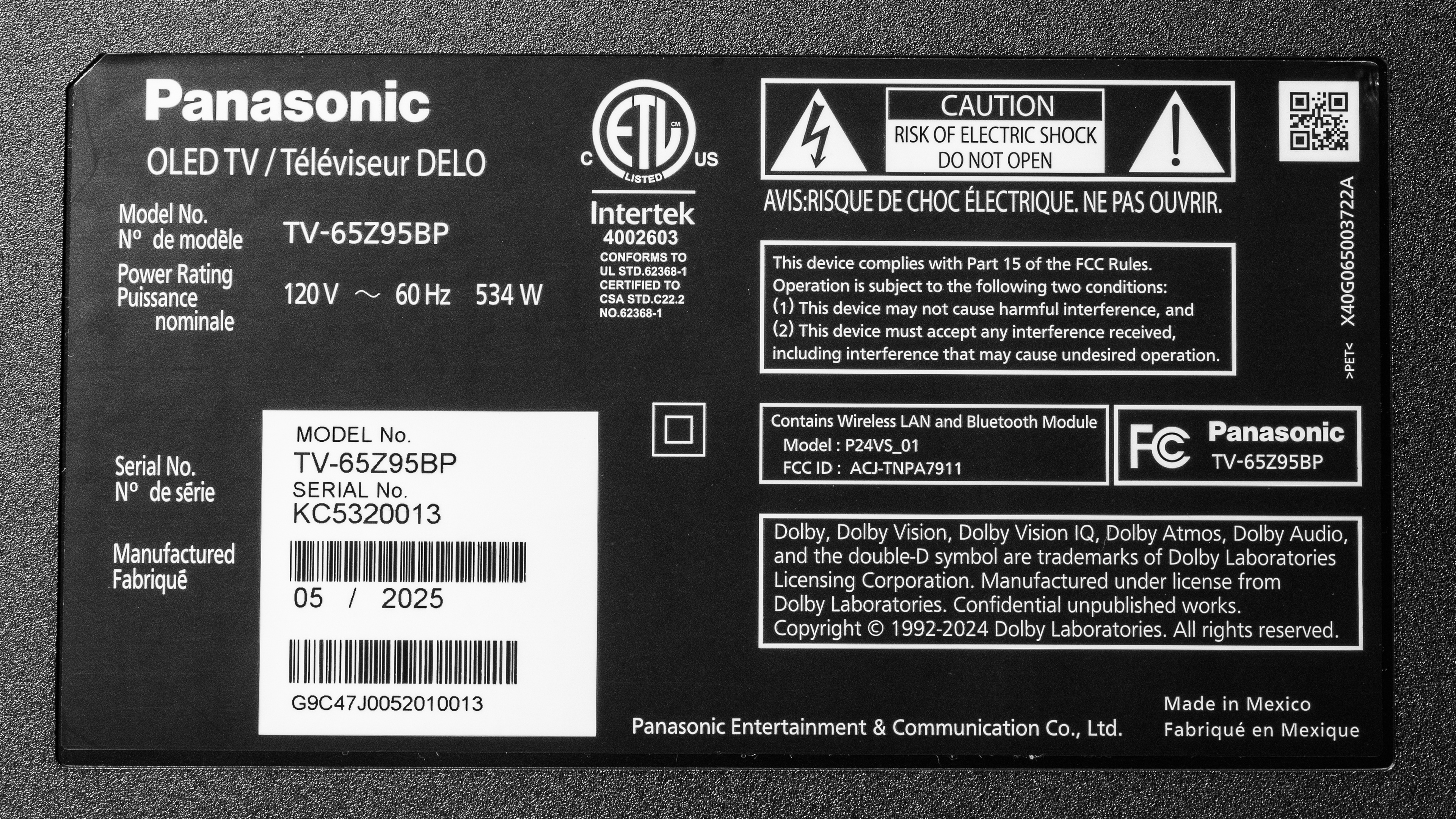 We bought and tested the 65-inch Panasonic Z95B (65Z95BP), and these results are also valid for the 55-inch (55Z95BP) and 77-inch (77Z95BP) models. There are no known variants of the TV, so our results should be valid for all regions, but the inputs vary depending on regional requirements for tuners.