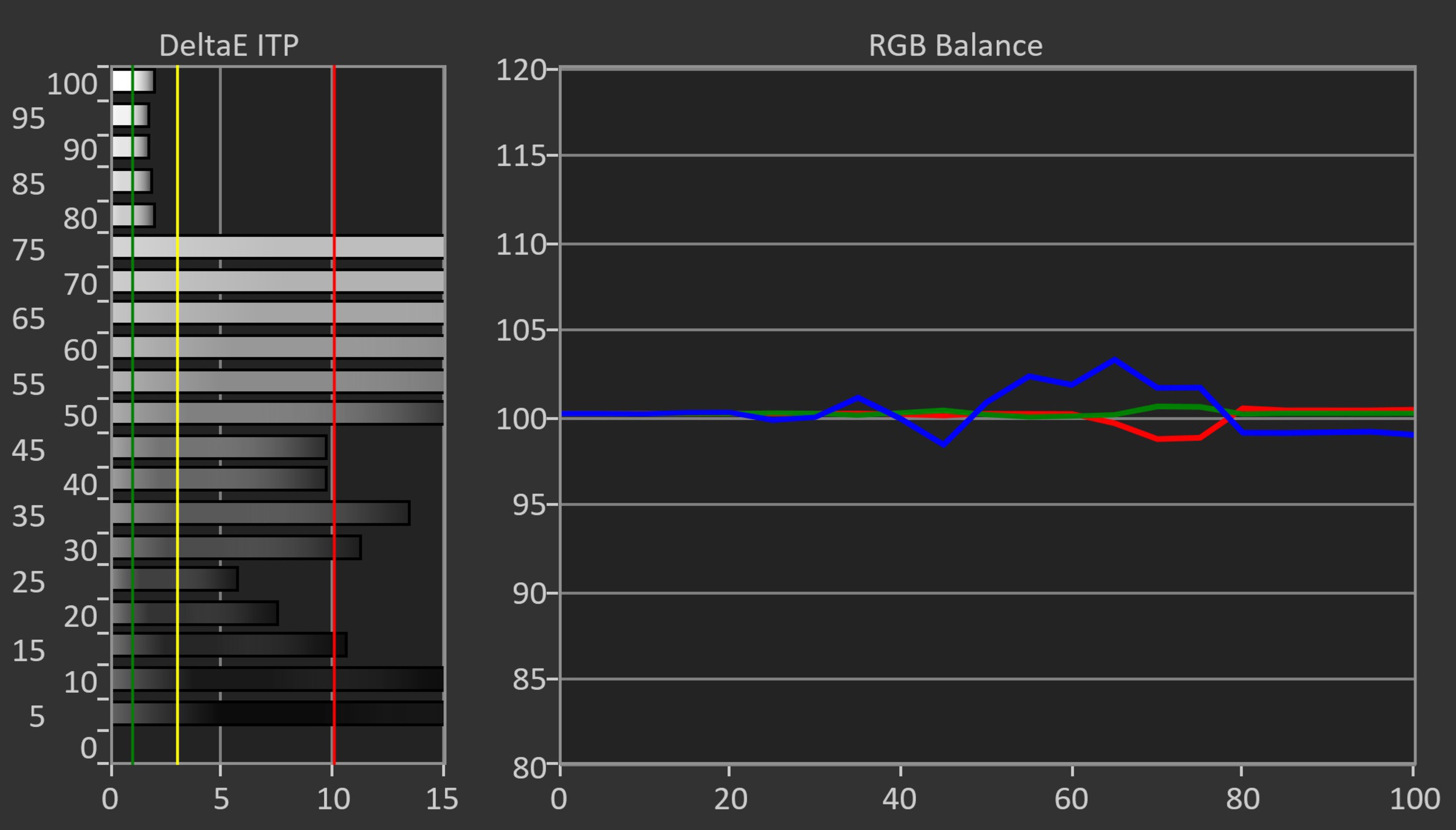 The TV has outstanding SDR color accuracy after calibration. Any minor errors in white balance, gamma, and color temperature are gone. Overall color accuracy has also improved, and there's only very minor inaccuracies in dark blues that aren't noticeable.