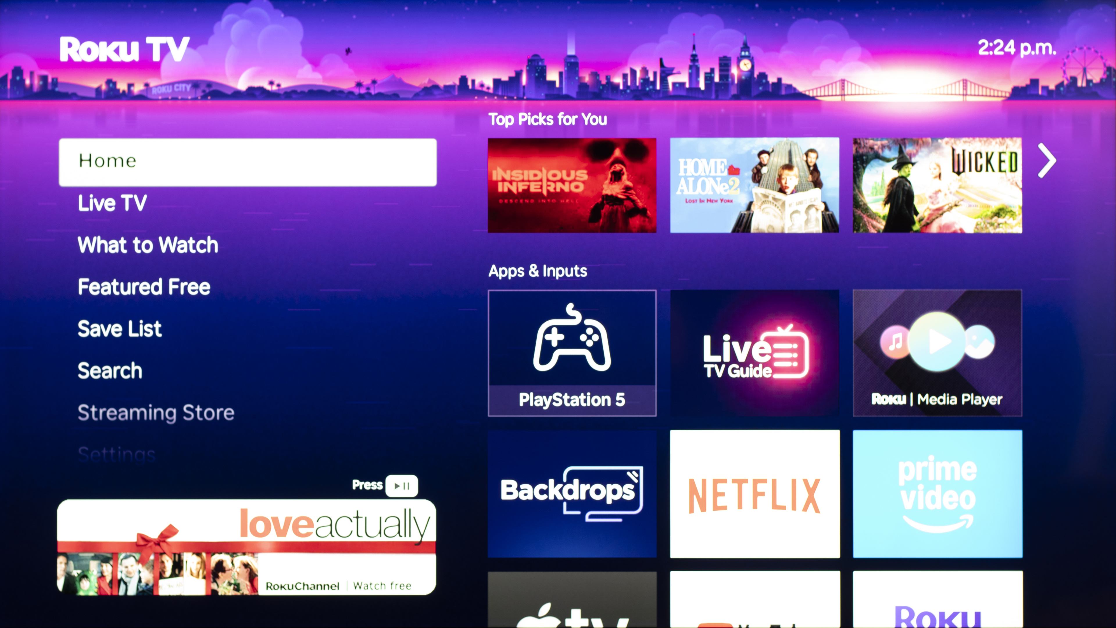 The Roku Pro Series TV runs version 15 of the Roku TV smart OS. Unfortunately, the remote randomly stops working at times, and the TV needs to be restarted for it to function again. Also, if it's disconnected from Wi-Fi, the home screen is blank, and you can't access inputs.