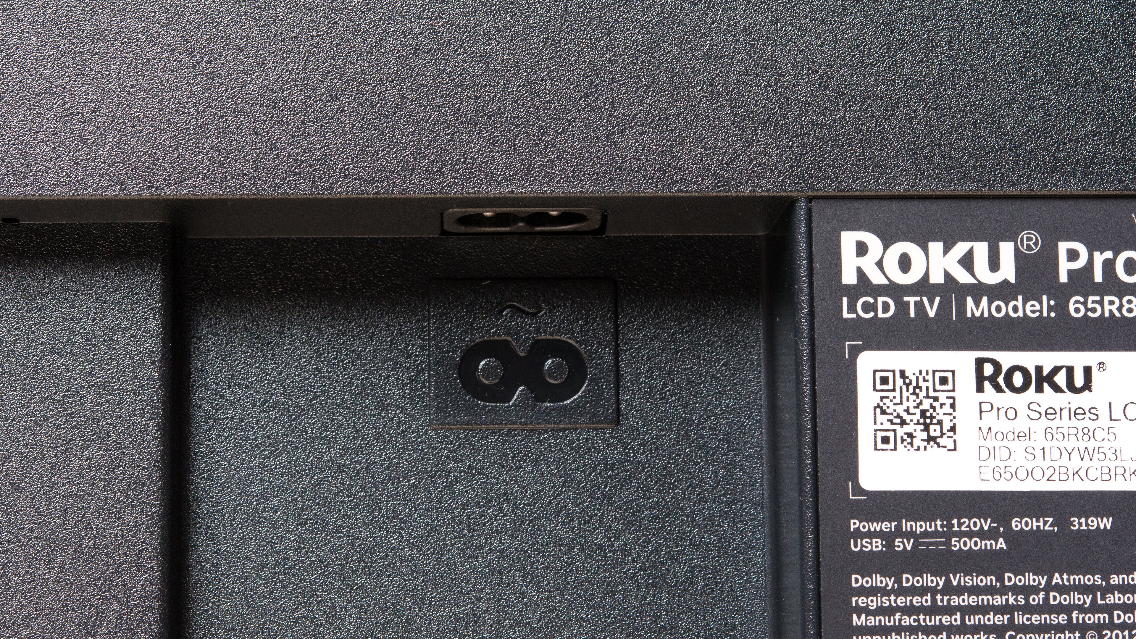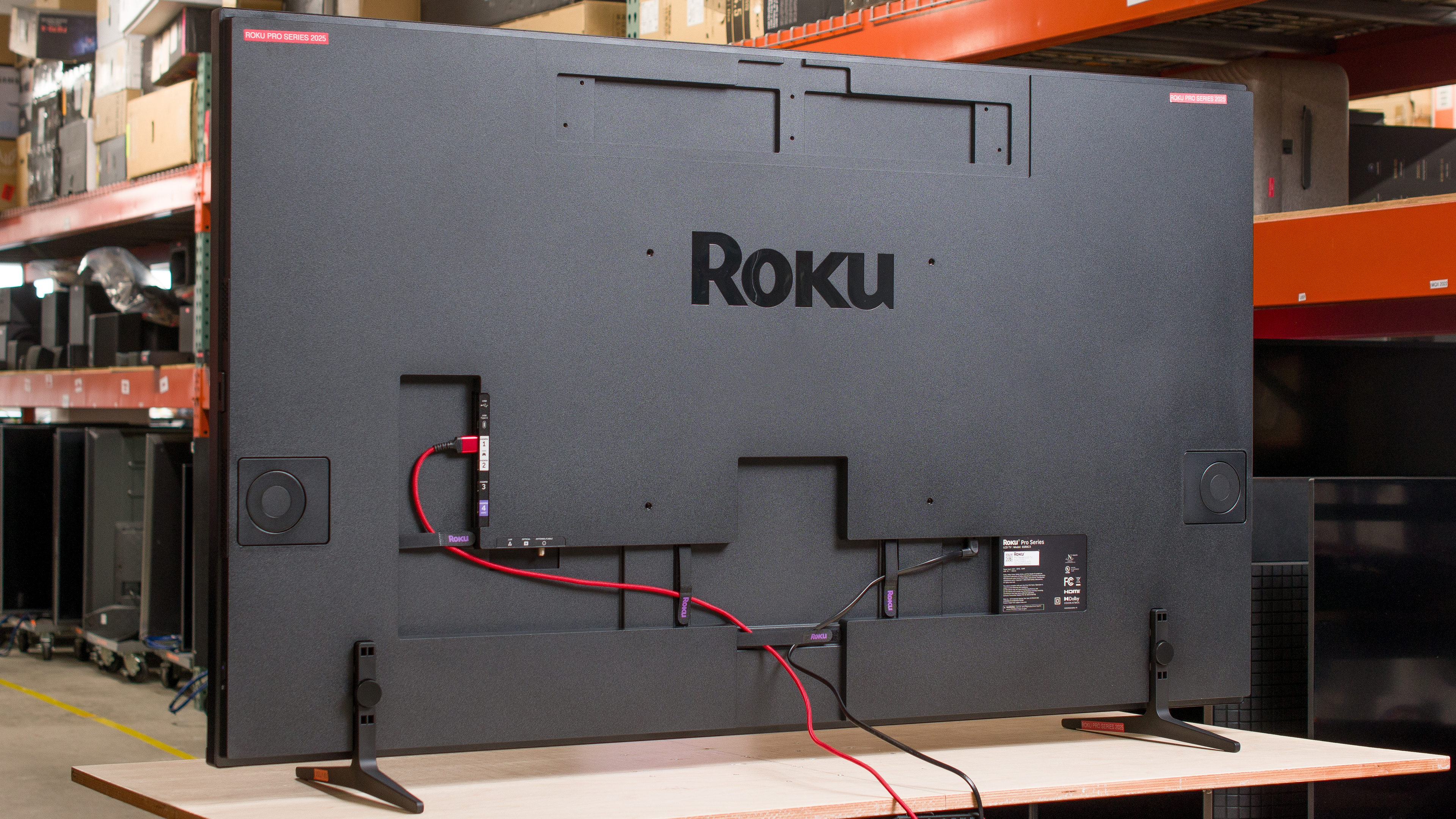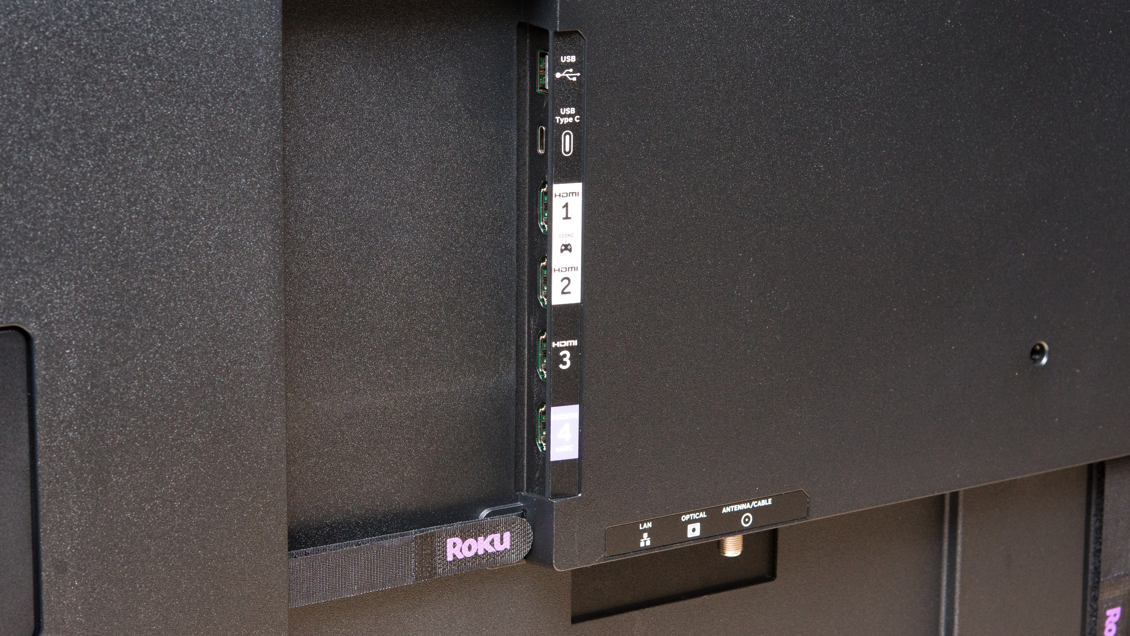 The back of the Roku Pro Series is made of sturdy plastic that doesn't feel cheap. You can purchase a slim wall mount specifically designed for this TV, but the inputs are located in a recessed cutout that's quite difficult to access when the TV is wall-mounted. Fortunately, it has velcro straps on the back to help with cable management.