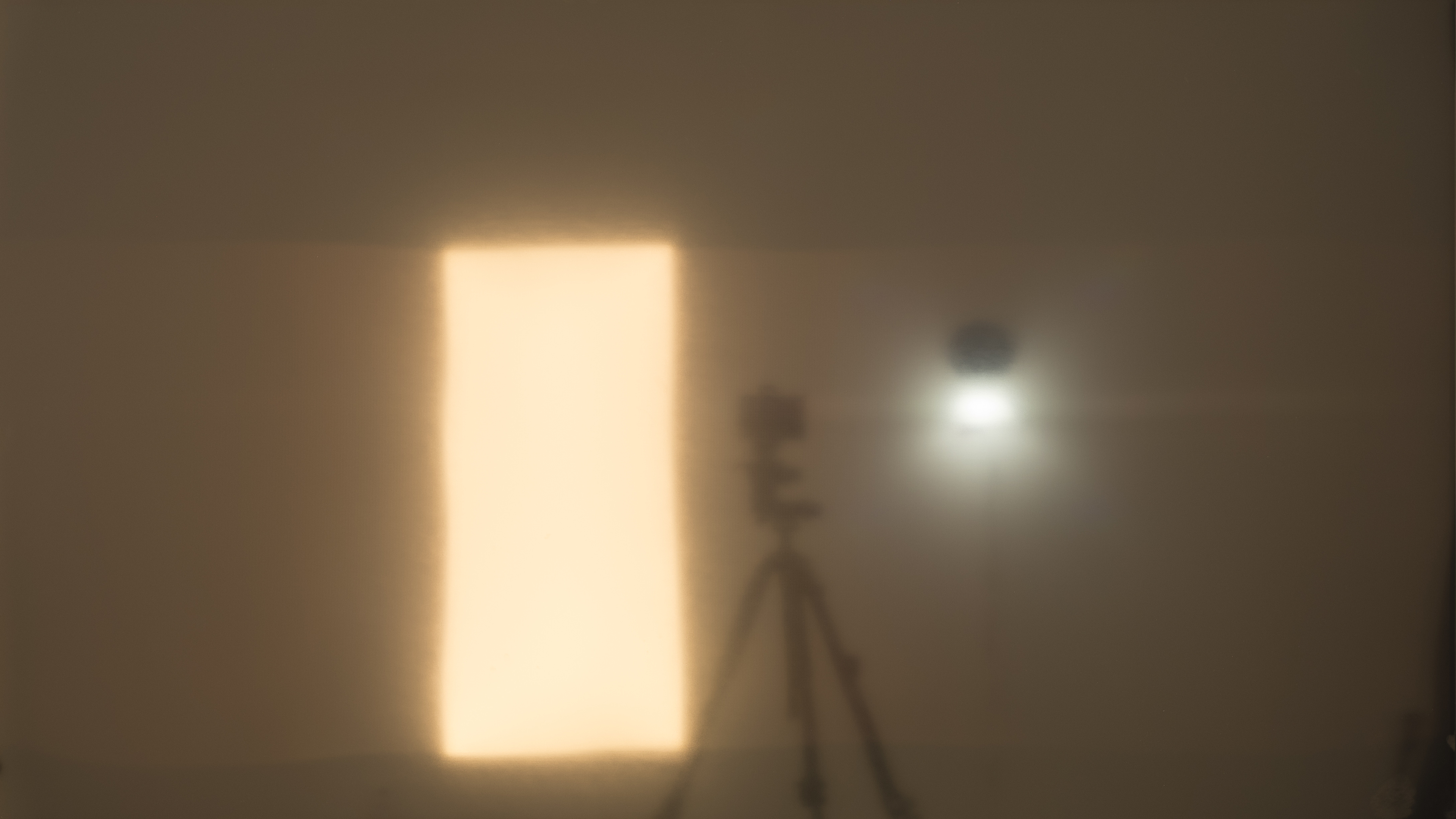 The TV has unremarkable gray uniformity. The corners of the screen are noticeably dimmer than the rest, there's uneven patches of brightness, and there's visible dirty screen effect towards the center of the screen. On a near-black screen, there are brighter splotches and cloudiness across the screen.