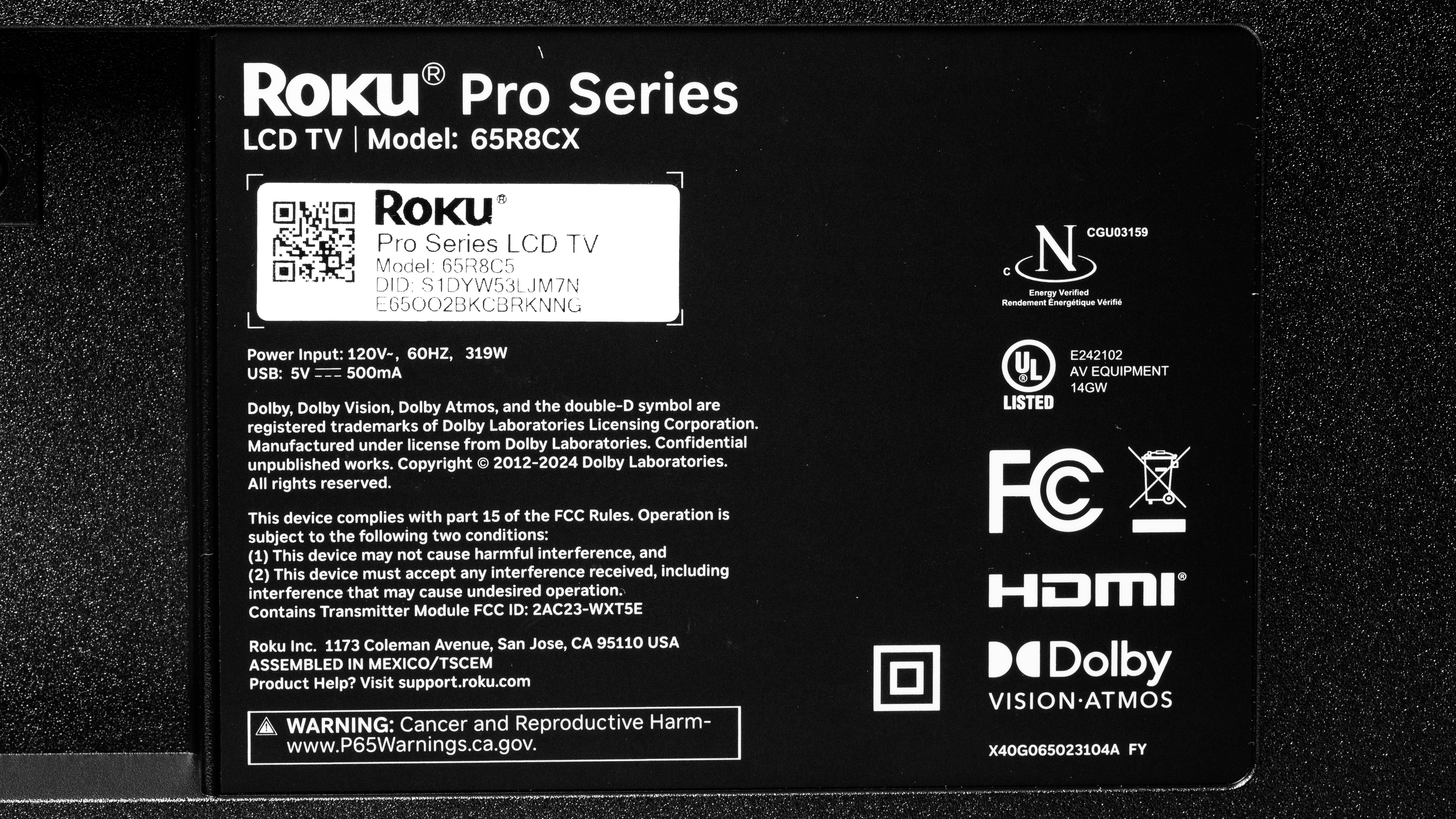 We bought and tested the 65-inch Roku Pro Series 2025 (65R8C5), and most of our results should also be valid for the 55 and 75-inch models. The number of dimming zones varies by size, so overall black level performance may be slightly different depending on the size you select. In Canada, the model code has 'CA' tacked onto the end, but there's no difference in performance. There are no known variants of the TV.