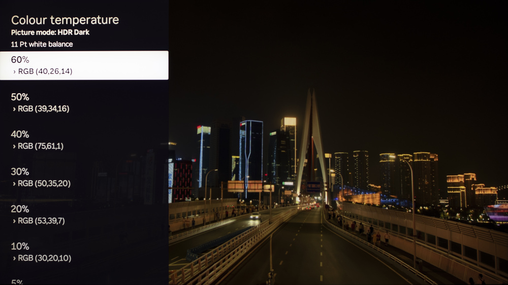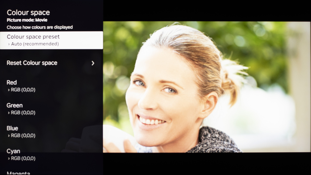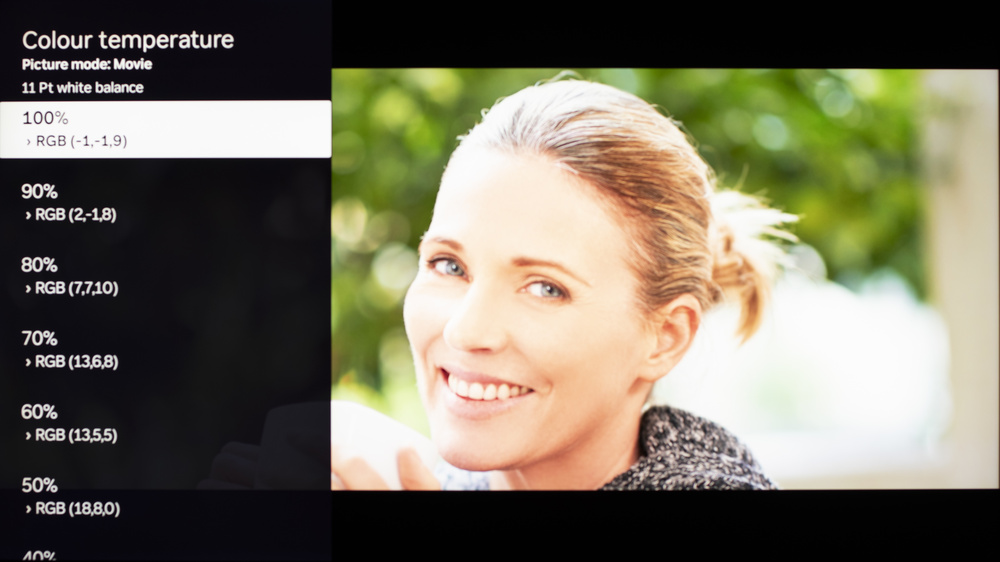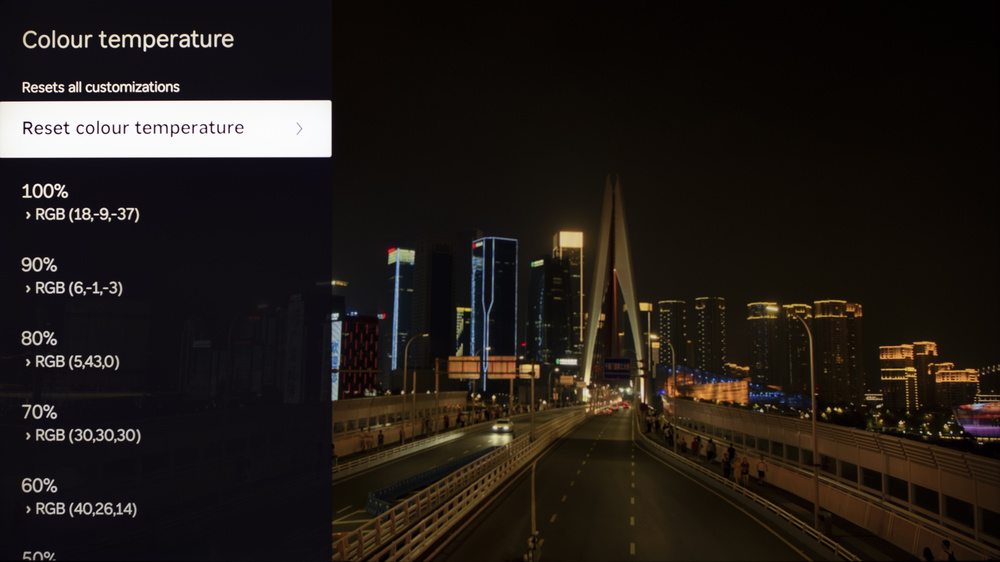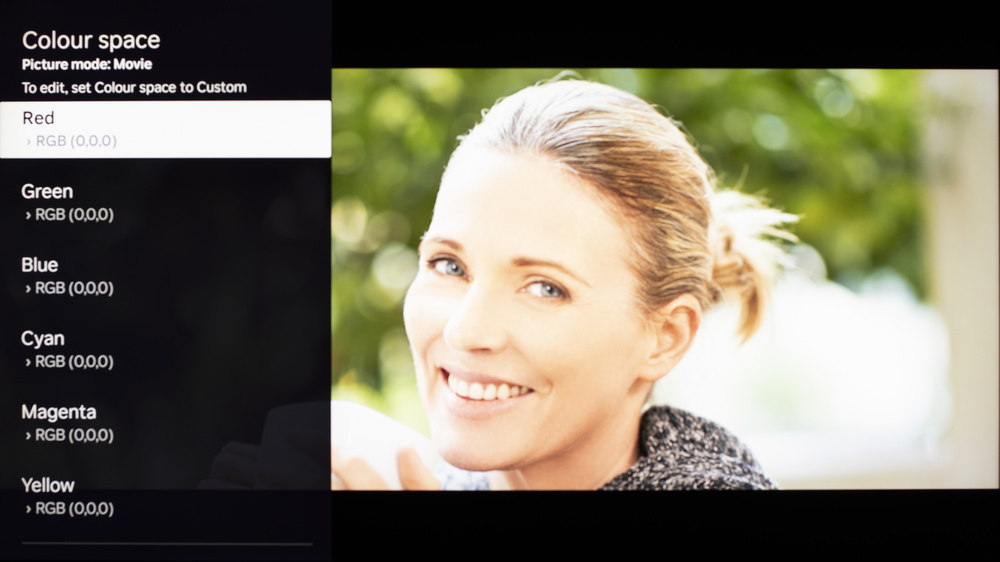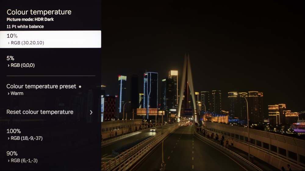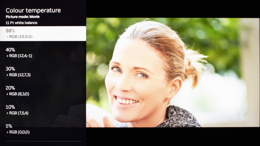 The following are the results of the white balance and colorspace calibration on our unit. They are provided for reference, and should not be copied as the calibration values vary per individual unit, even for the same model and size as the TV we reviewed, due to manufacturing tolerances. If you want to try them, you will need to enter all the values shown, as all of them are active simultaneously. If you end up with worse picture quality, simply reset them to the default values.