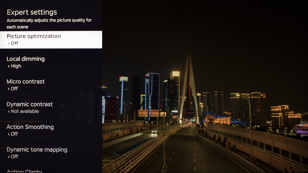 HDR is automatically enabled for native apps. When you start playing HDR content, a small HDR icon appears in the picture settings menu. Once you start playing HDR content, some of the settings change automatically. Below are the settings we used for HDR10. All other settings were either disabled or left off.