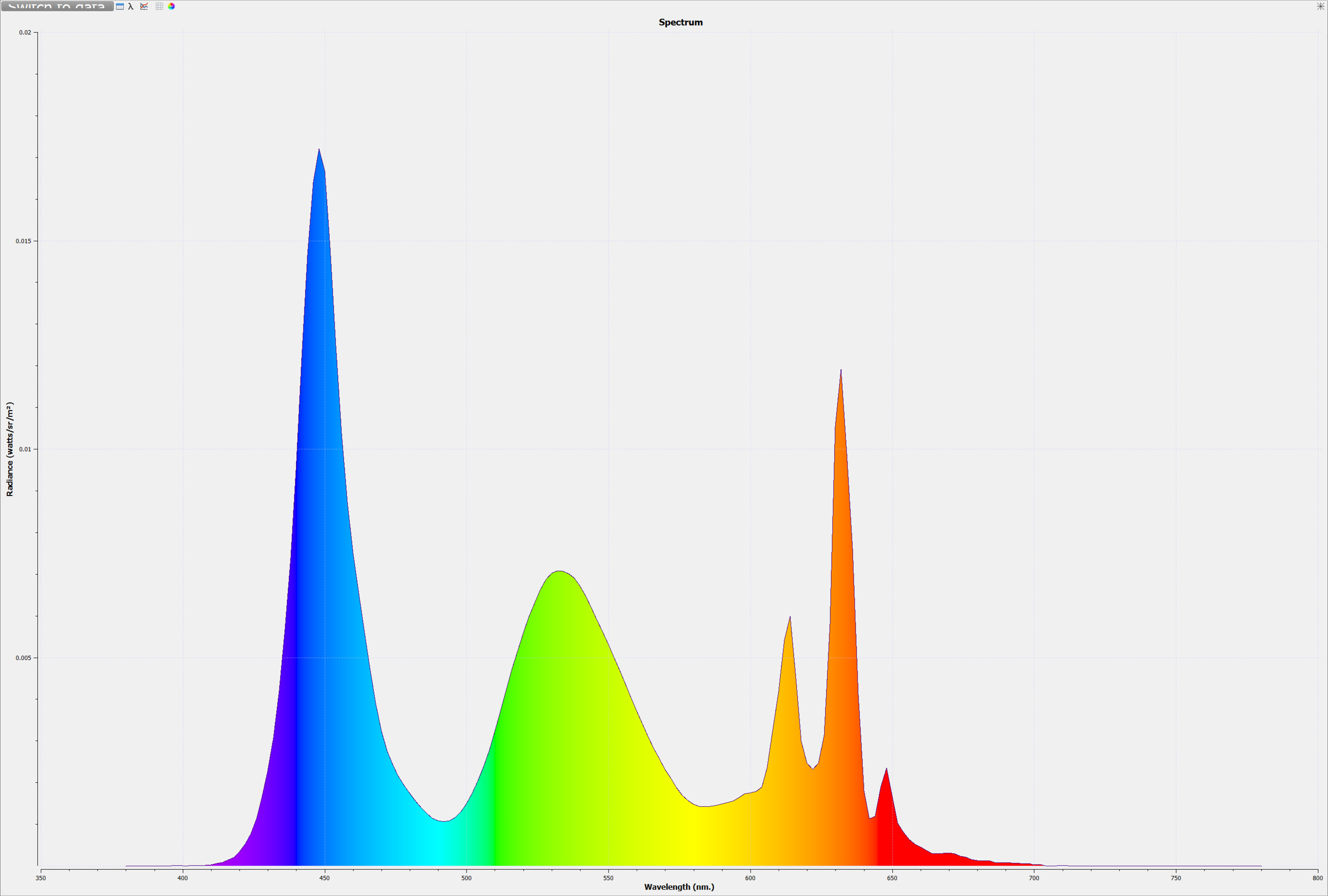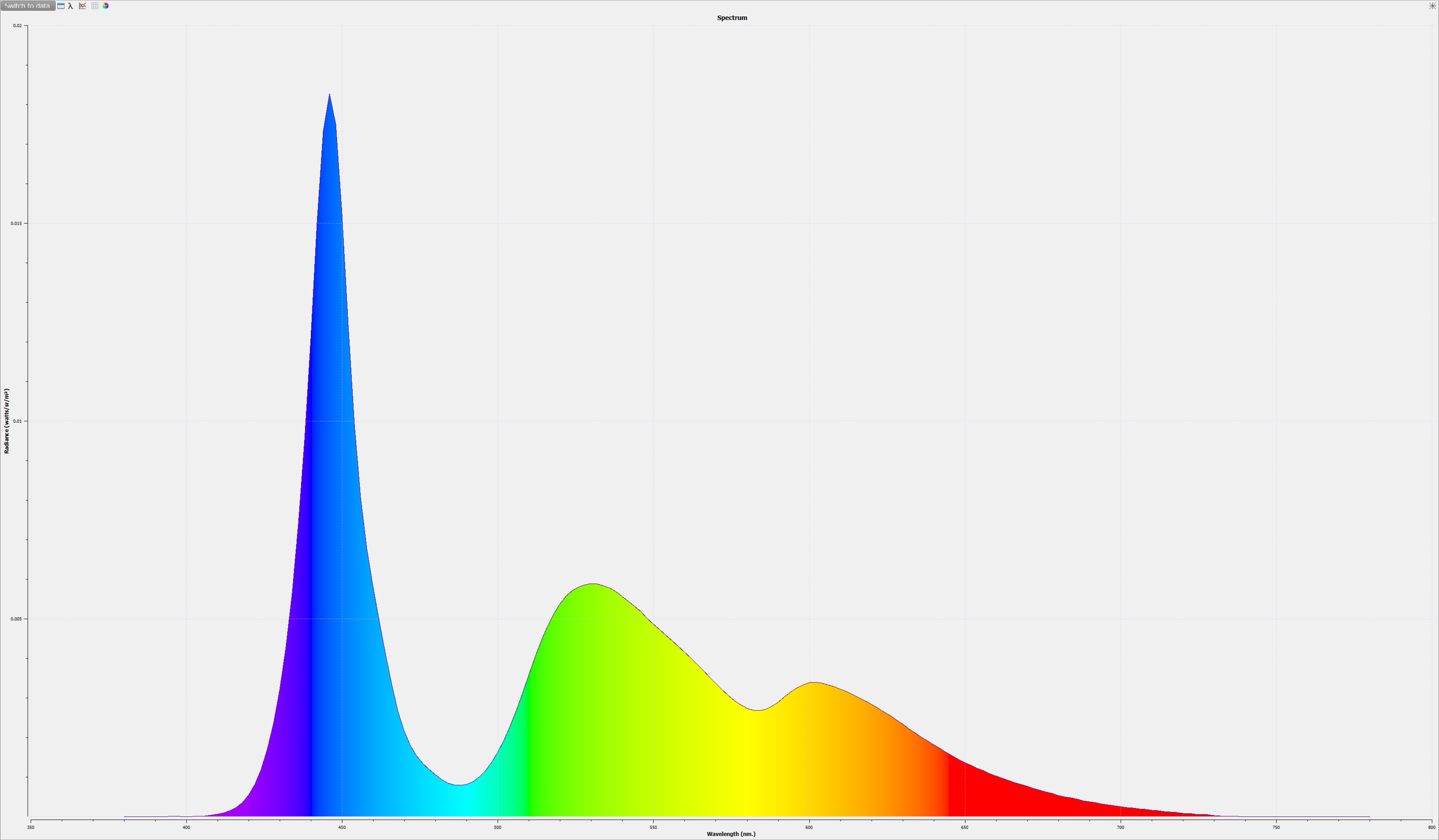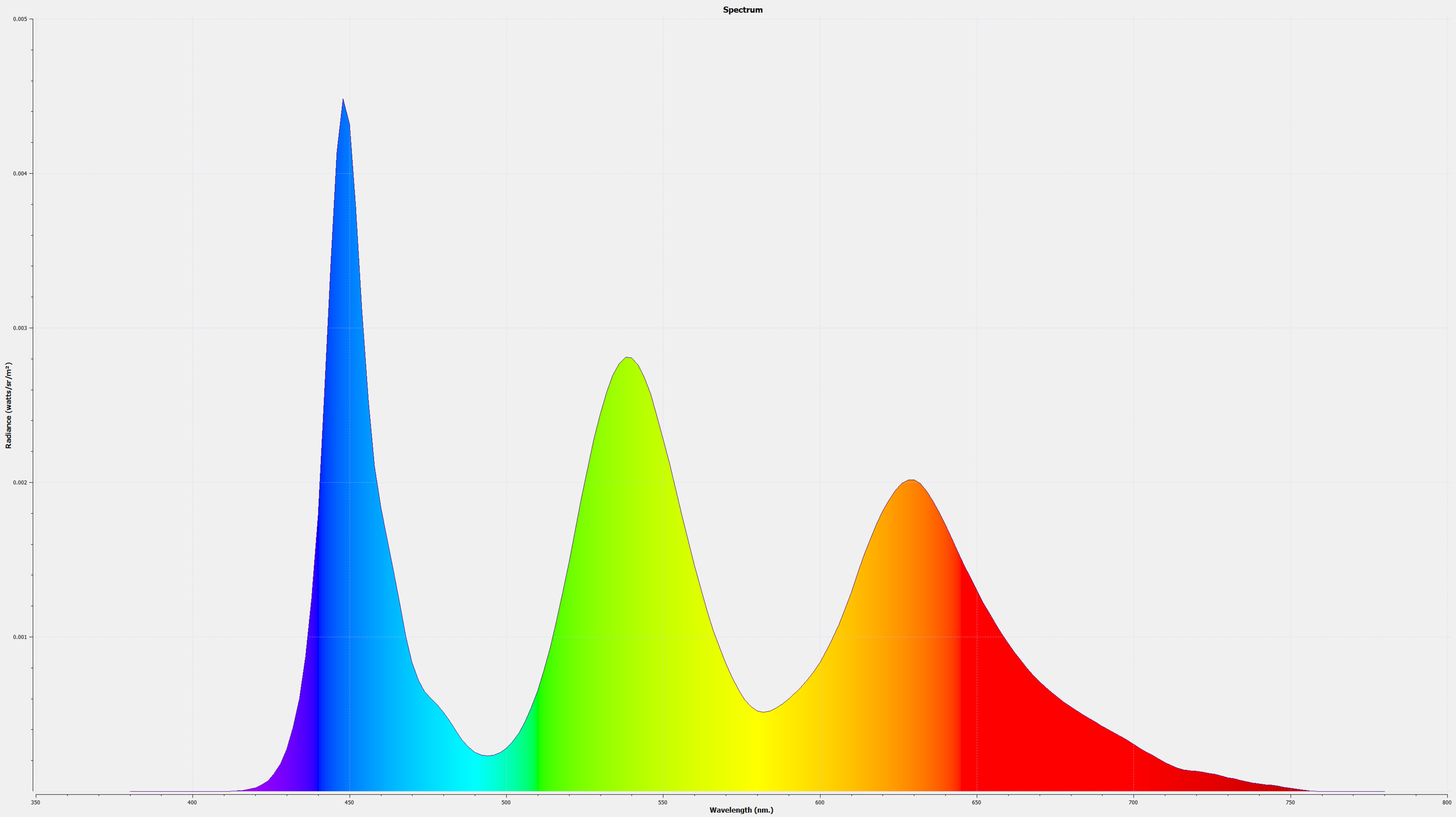 This TV's spectral power distribution (SPD) confirms that it's using a PFS phosphor coating, resulting in a much wider color gamut than traditional non-QLED TVs from Samsung, like the Samsung CU7000 (SPD). In fact, the color gamut of this TV is just as wide as Samsung's entry-level QLED, the Samsung Q60C QLED (SPD). These results are very similar to the Hisense A6/A65K, which uses a similar panel with a PFS phosphor.