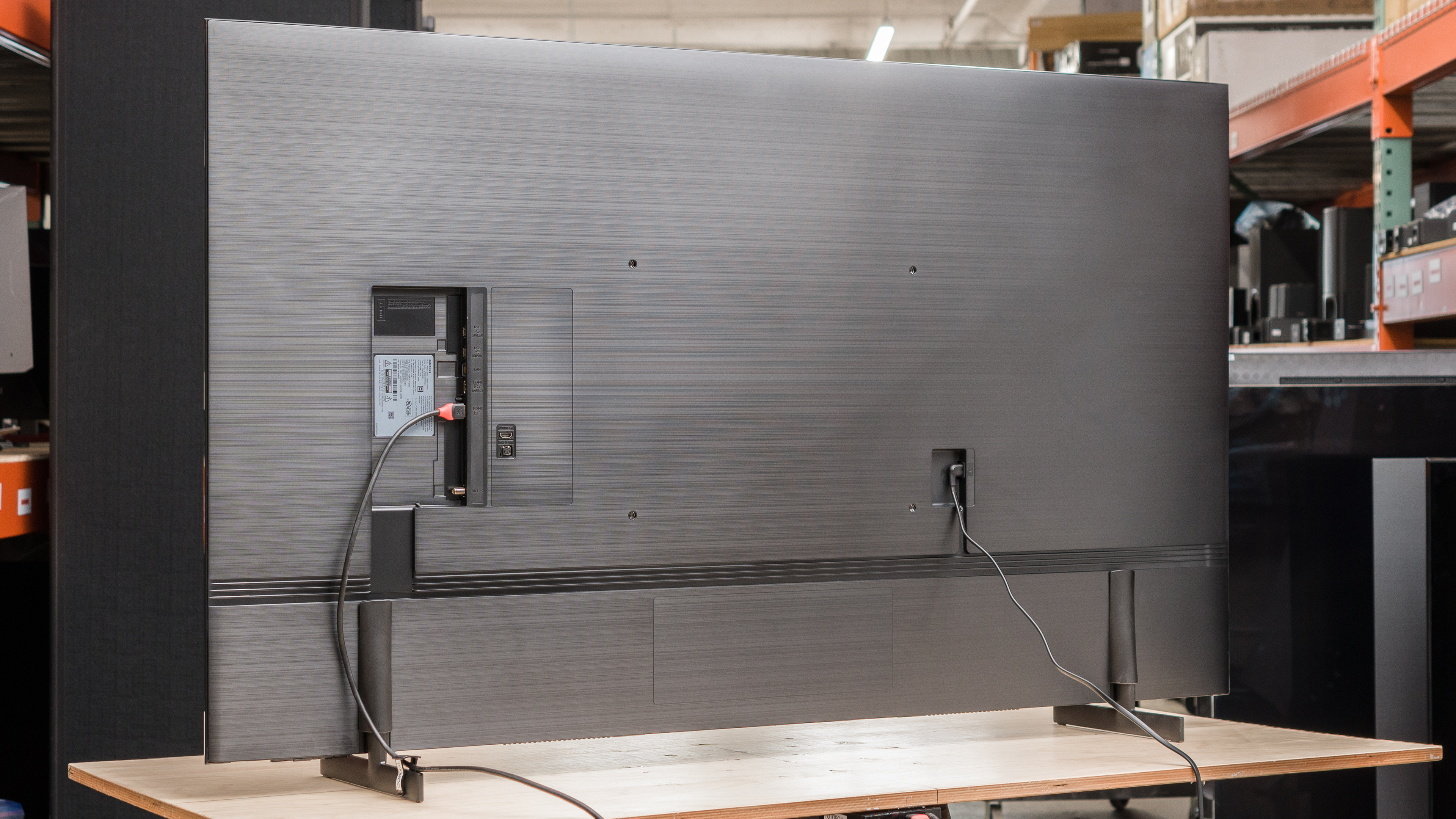 The back of the TV is plastic and has etched horizontal lines that are nearly identical to the Samsung AU8000. The Samsung CU8000 offers little in terms of cable management, but you can run cables through cable channels on the back of the TV and then through a small clip set on the back of the feet. The input ports are placed within a cutout on the back of the TV, and one port is directly on the back panel, making them very hard to reach if the TV is wall-mounted. For that reason, if you want to wall-mount this TV, a mounting arm is recommended.