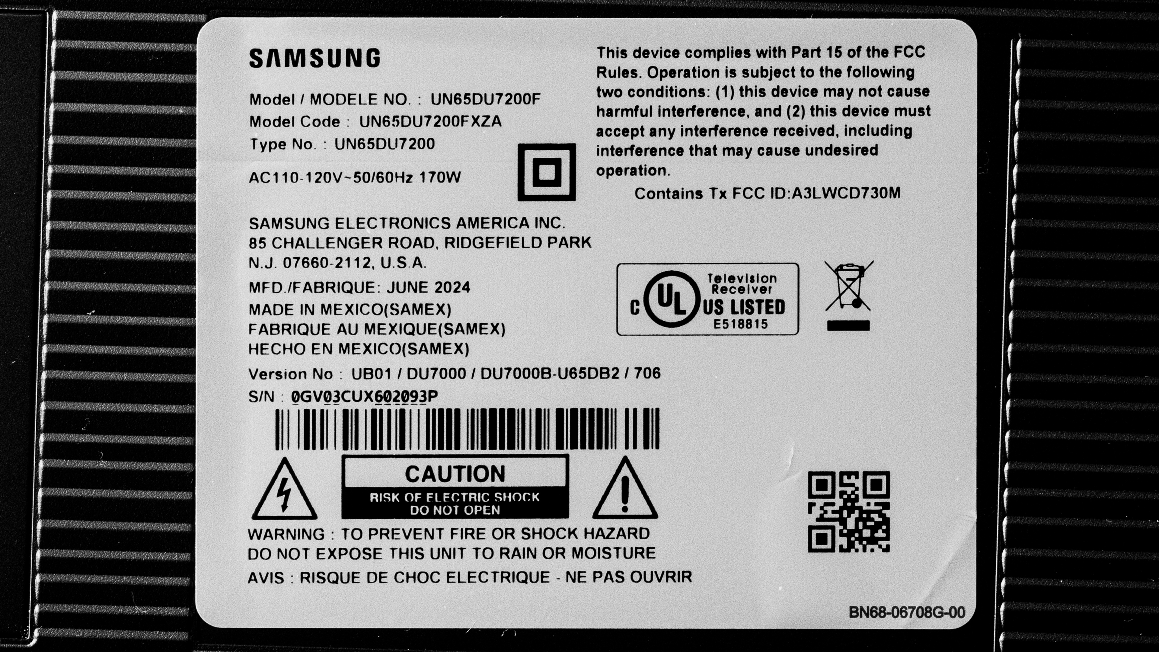 The Samsung DU7200 is an entry-level model in Samsung's D Series lineup. It sits above the Samsung DU6900 and below the Samsung DU8000. It's a pretty basic model without local dimming, and it only has HDMI 2.0 bandwidth and a 60Hz panel. However, it still has some basic features like VRR, motion interpolation, black frame insertion, AirPlay, and HDR10+. It runs a stripped-down version of Samsung's Tizen OS, but it's still loaded with a ton of streaming apps and comes with Samsung's TV Plus, which has a ton of free channels. It also has a built-in 20W 2.0 channel speaker system. We bought and tested the 65-inch model, but it's also available in 43, 50, 55, 60, 70, 75, and 85-inch models.