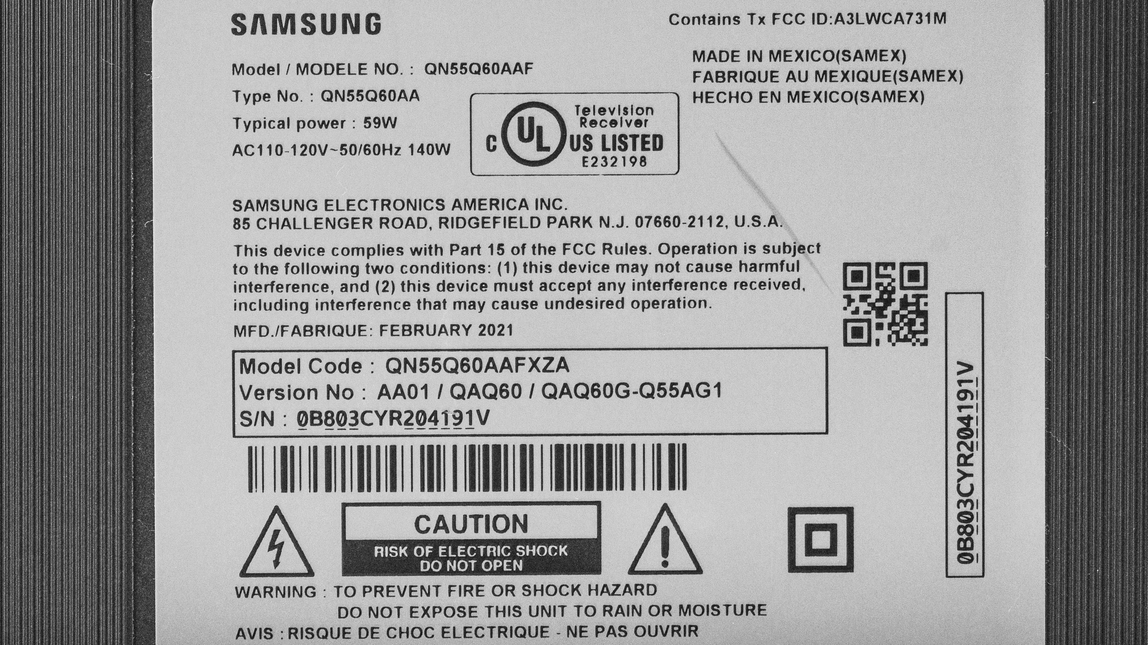 We tested the 55 inch Samsung Q60A (QN55Q60AAFXZA). Note that with Samsung TVs, the six letters after the short model code (AAFXZA in this case) vary between regions and even between different retailers. Two similar models are sold in some regions, the Q65A and the Q68A; however, we don't know how they perform. The Costco variant, known as the Q6DA, performs the same as the one we've tested.