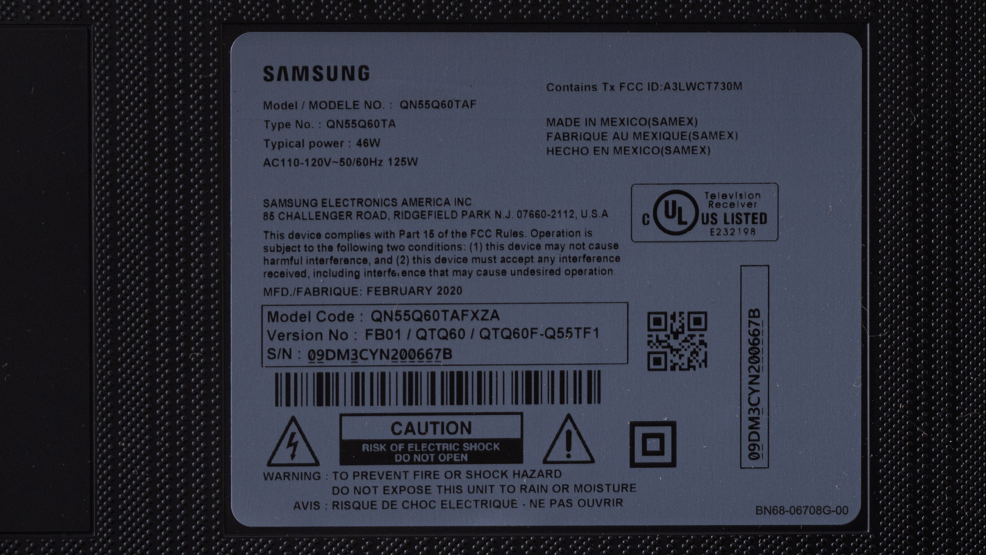 We tested the 55 inch Samsung Q60T, but the results are valid for the other sizes available, which you can see in the table below. You can find it sold as the Q6DT at warehouse stores, and the 70 inch model is only sold at Costco in the U.S. Note that with Samsung TVs, the five letters after the short model code (AFXZA in this case) can vary between regions and even between different retailers.