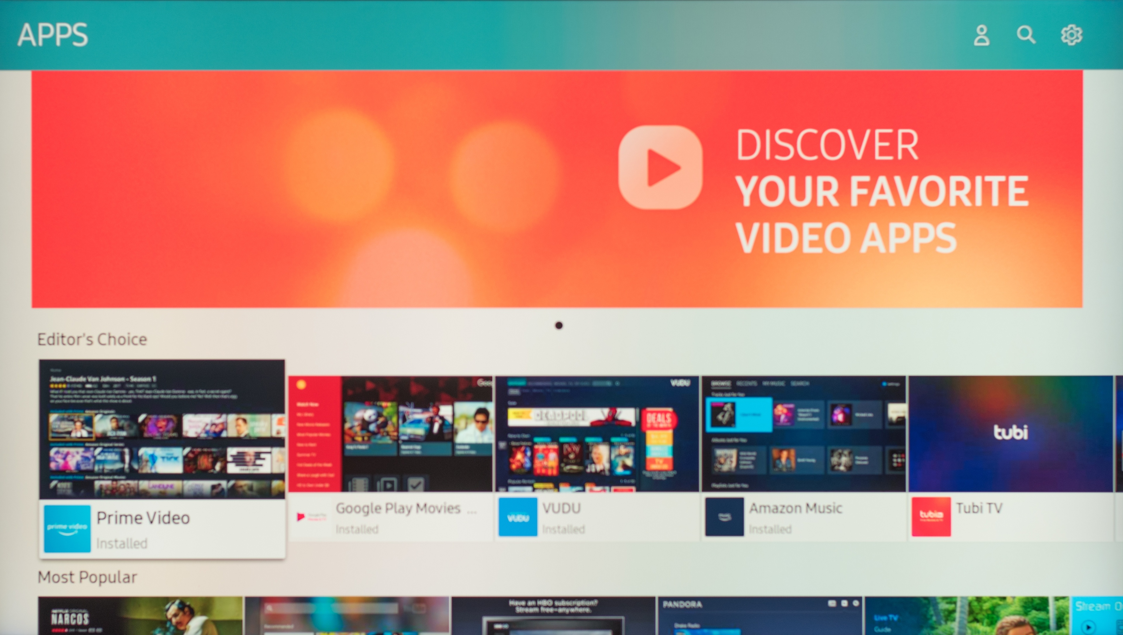 Like all Samsung TVs, there are intermittent ads in the main interface and they can't be disabled.