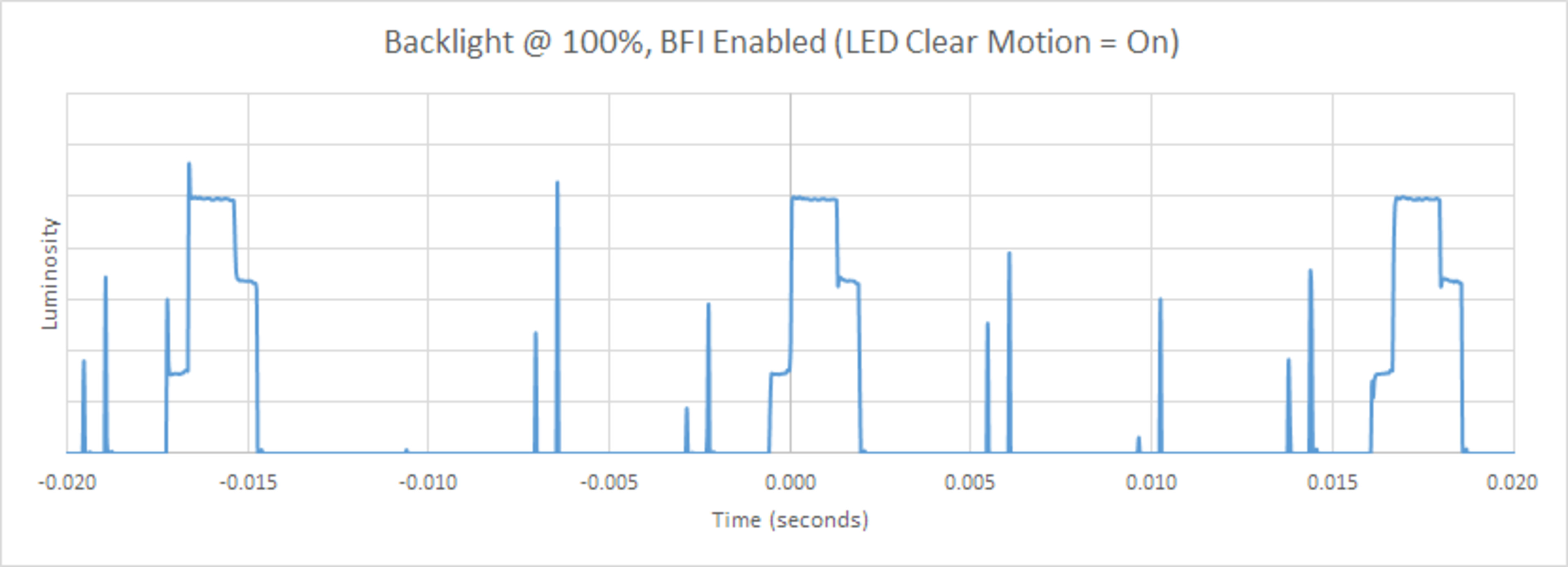 Like the other 2018 Samsung QLEDs, the backlight flicker varies quite a bit depending on the motion settings used, as shown here.