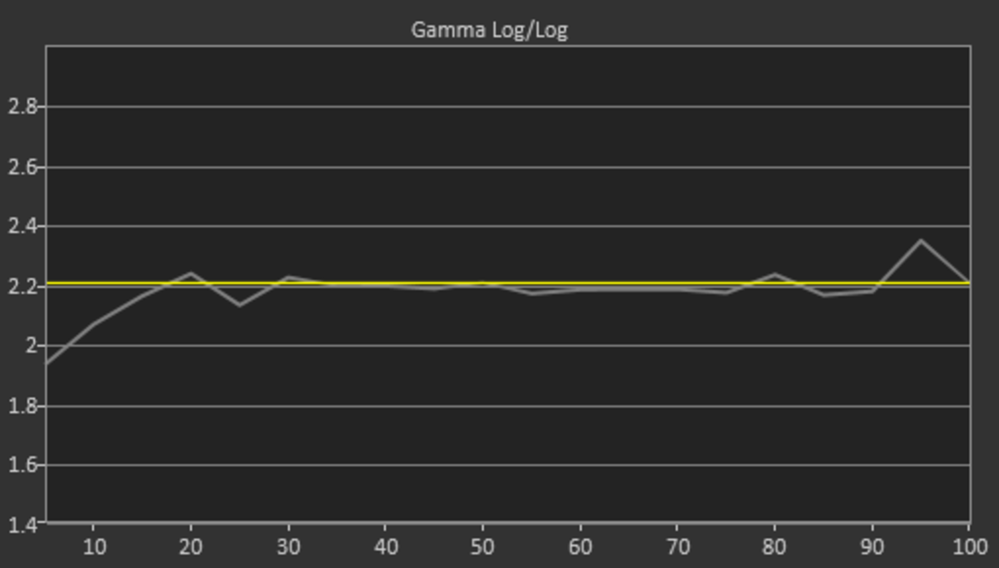 The post-calibration image is excellent. The color temperature is very close to our target, and gamma follows our target almost exactly.
