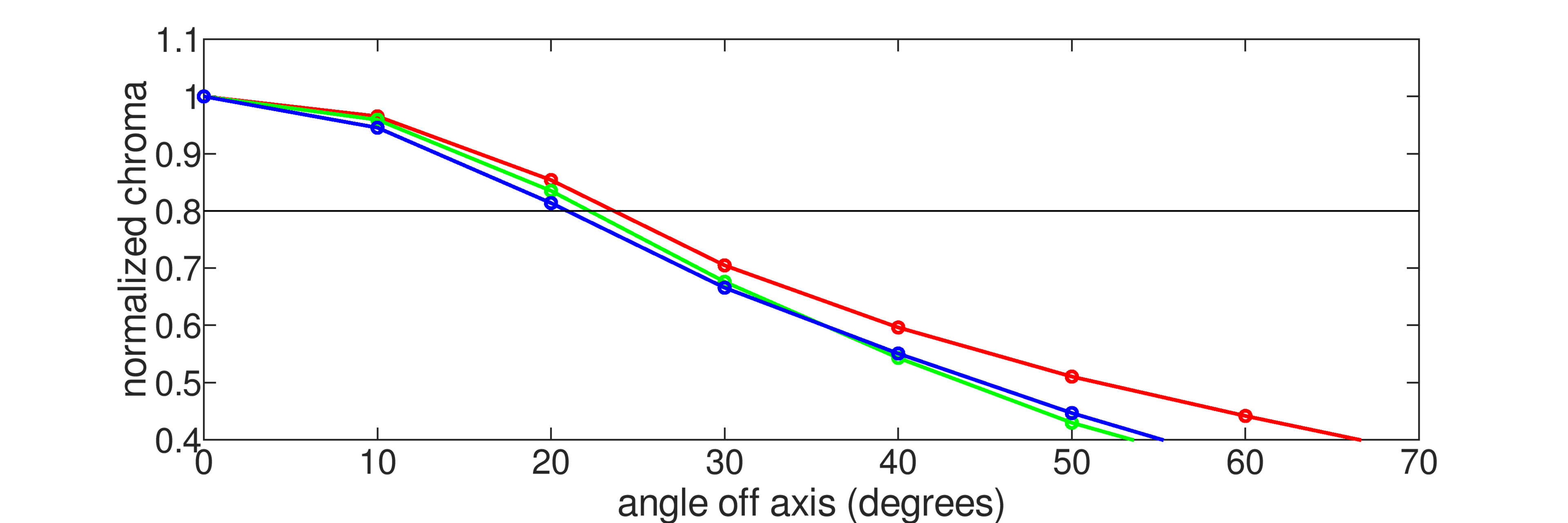 At low input levels, the image appears slightly dark as white is missing luminosity. Colors, however, are quite accurate, and just a little warmer due to the 6318K color temperature. The gamma is off at 2.45.