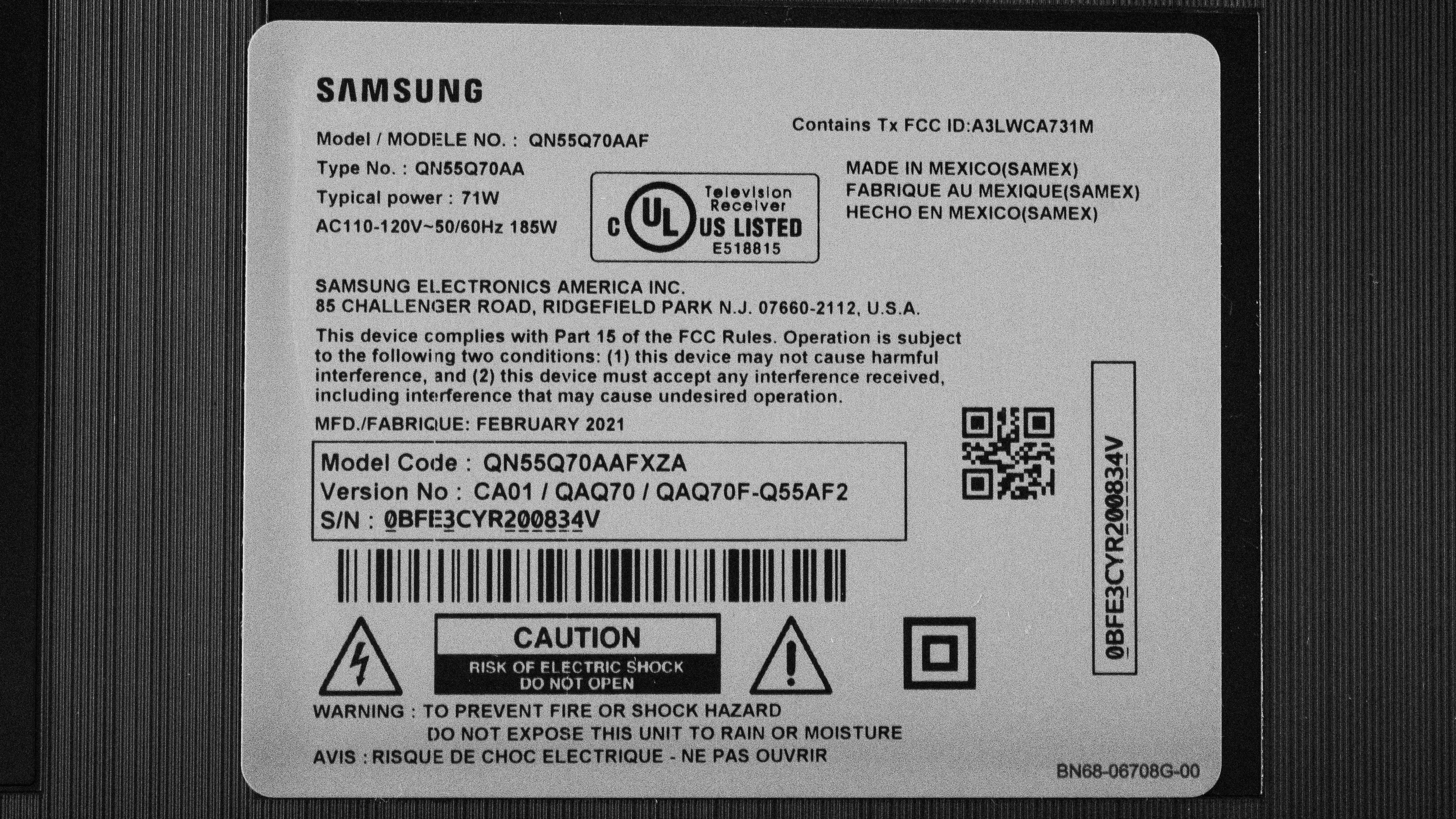 We bought and tested the 55-inch Samsung Q70A, and these results are also valid for the 65, 75, and 85-inch sizes. There's a variant sold at Costco and Sam's Club as the Samsung Q7 Series or the Samsung Q7DA.