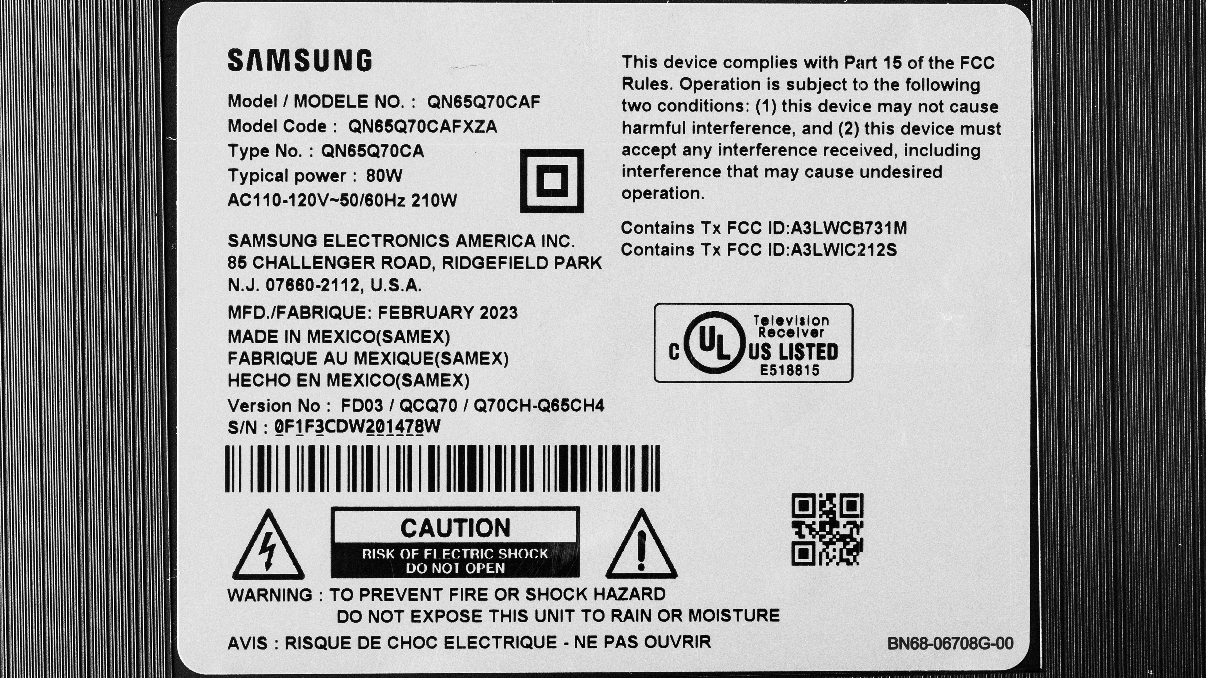 We tested the 65-inch Samsung Q70C, and the results are valid for the 55, 75, and 85-inch models. The last four letters of the model code (in this case, FXZA) vary between regions and even retailers, and not all regions carry all the variants. As Samsung's European lineup differs, these results are only valid for the North American Q70C.