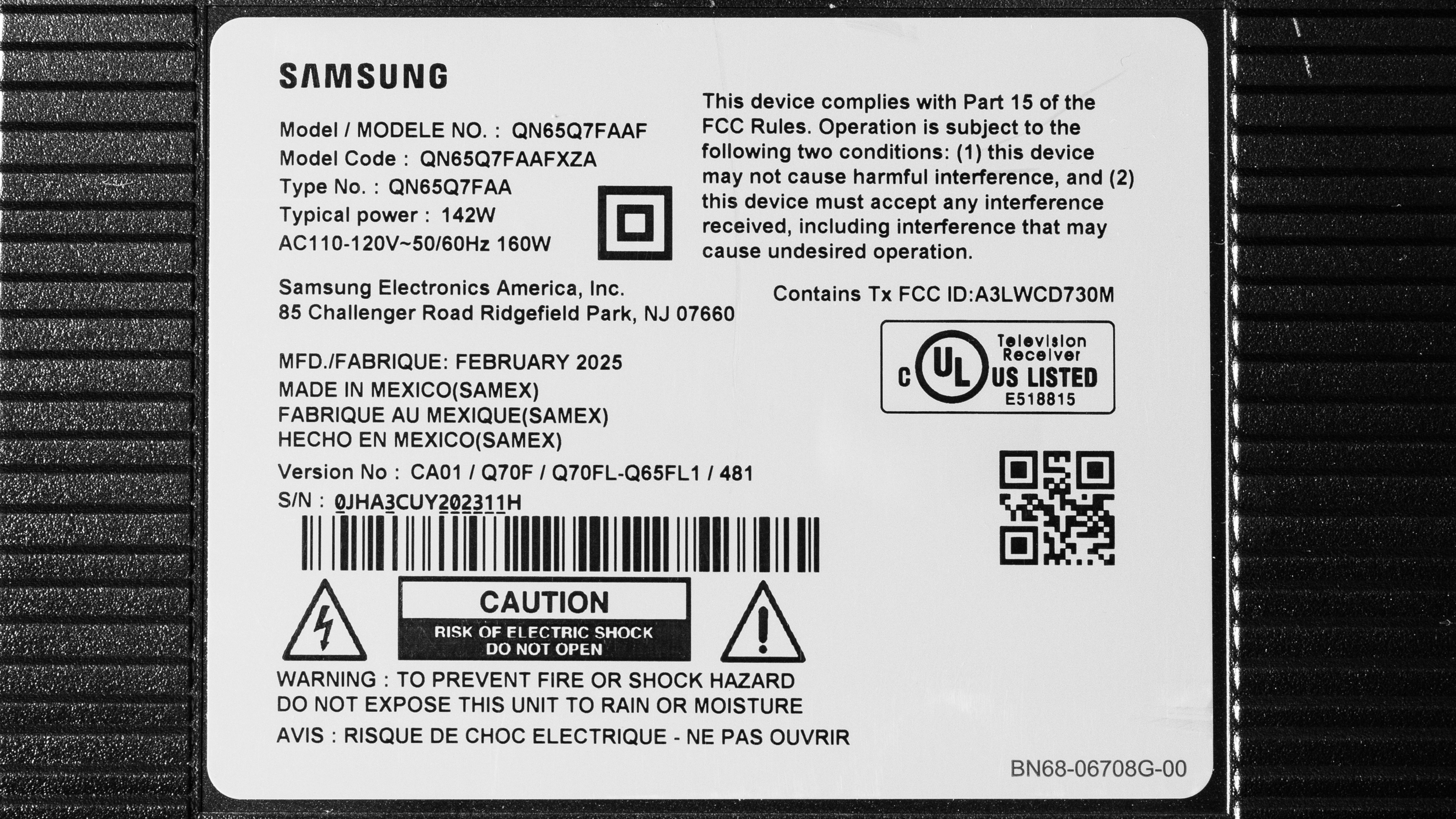 We've bought and tested the 65-inch Samsung Q7F 2025, which is also available in 43, 50, 55, 75, 85, and 98-inch sizes. All sizes offer the same picture quality and overall performance. Note that with Samsung TVs, the four letters after the short model code (FXZA in this case) vary between different retailers and regions, but there's no difference in performance.