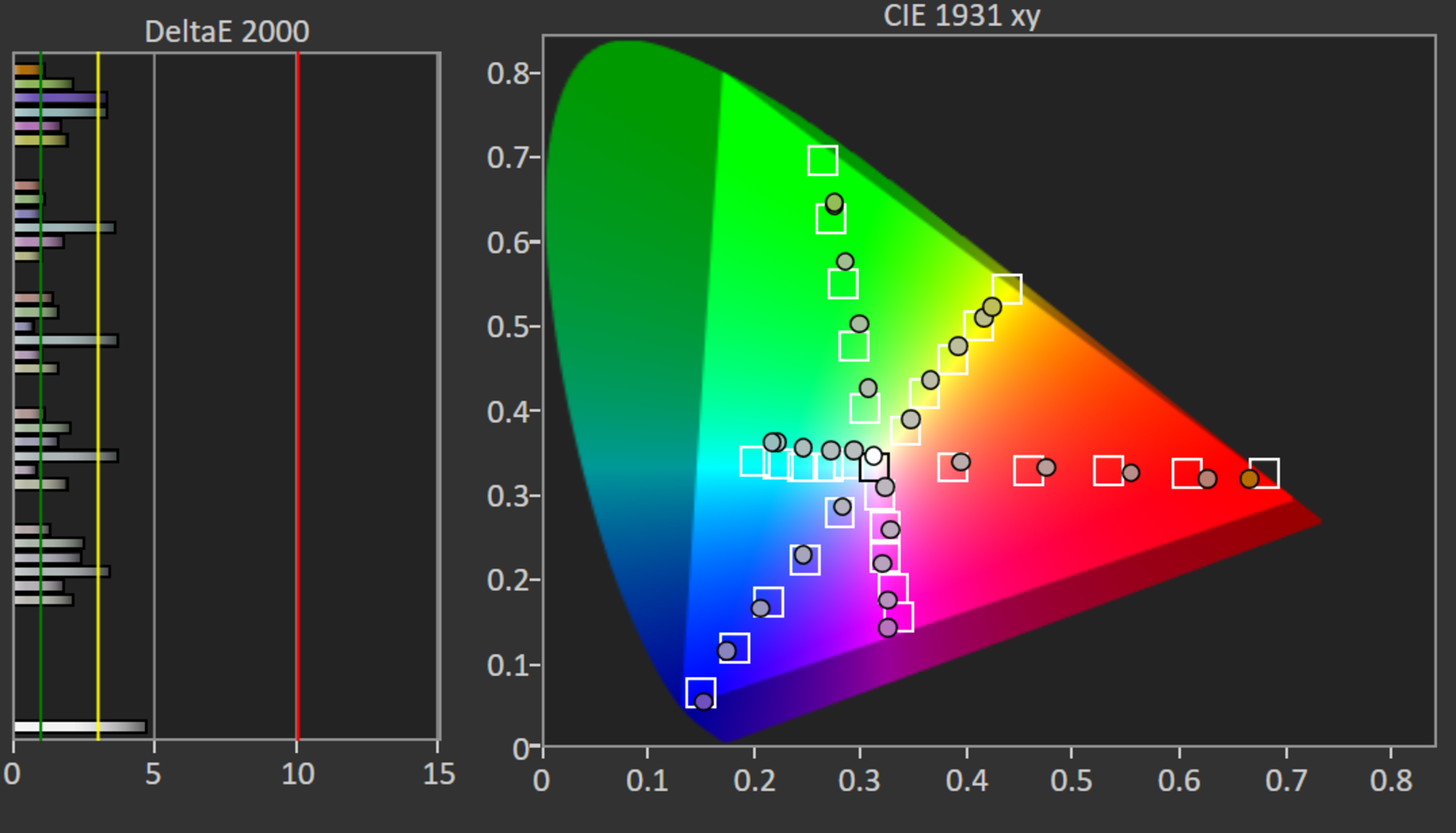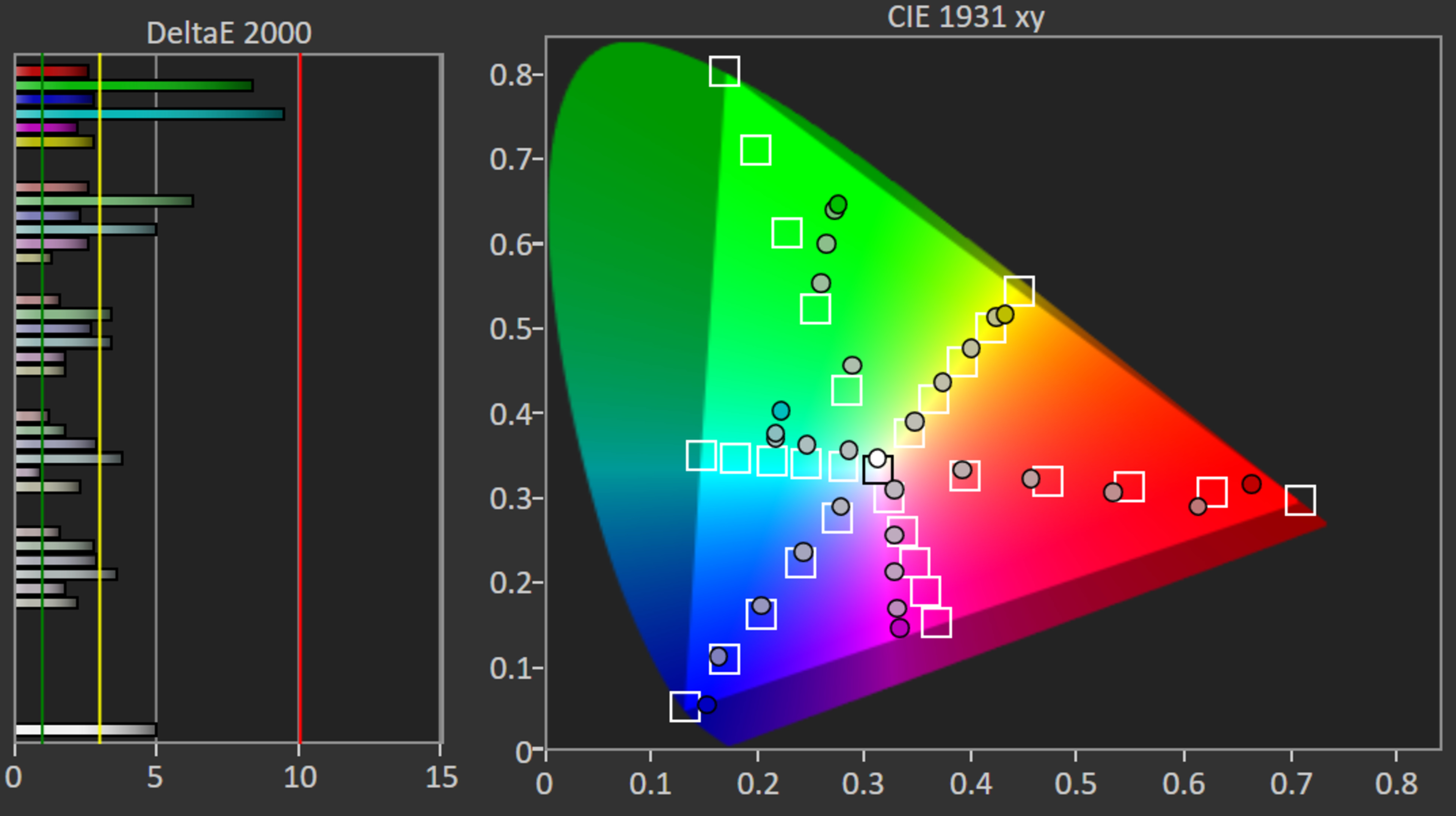 After calibration, the Samsung QN85B has fantastic accuracy. Any remaining issues with the color accuracy, white balance, or gamma aren't noticeable. The color temperature is extremely close to the 6500K target.