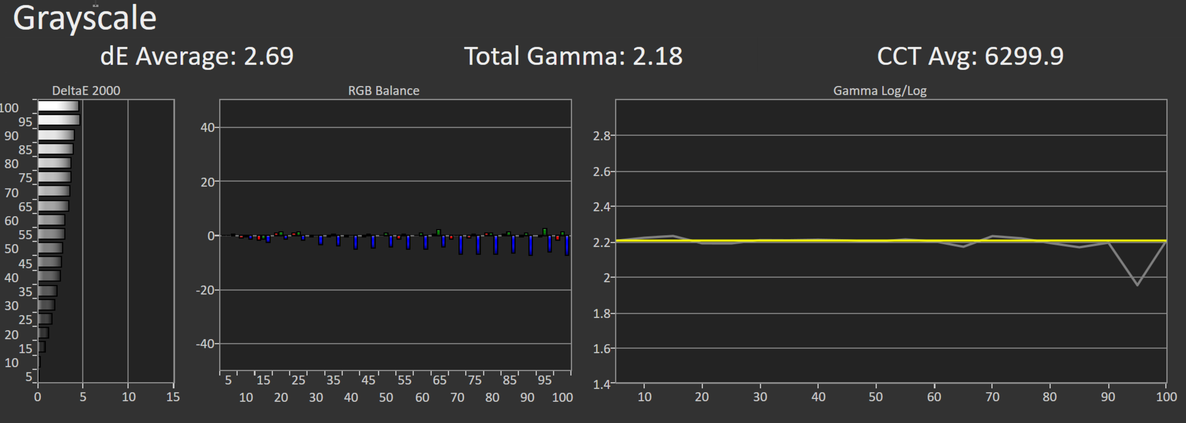 The Samsung QN85B has great accuracy out of the box. The white balance is a bit off, especially in brighter shades of gray, but most colors look great. The white balance is a touch warm, but it's not really noticeable, and gamma is very close to the 2.2 target for a dark room, but bright scenes are over-brightened a bit.
