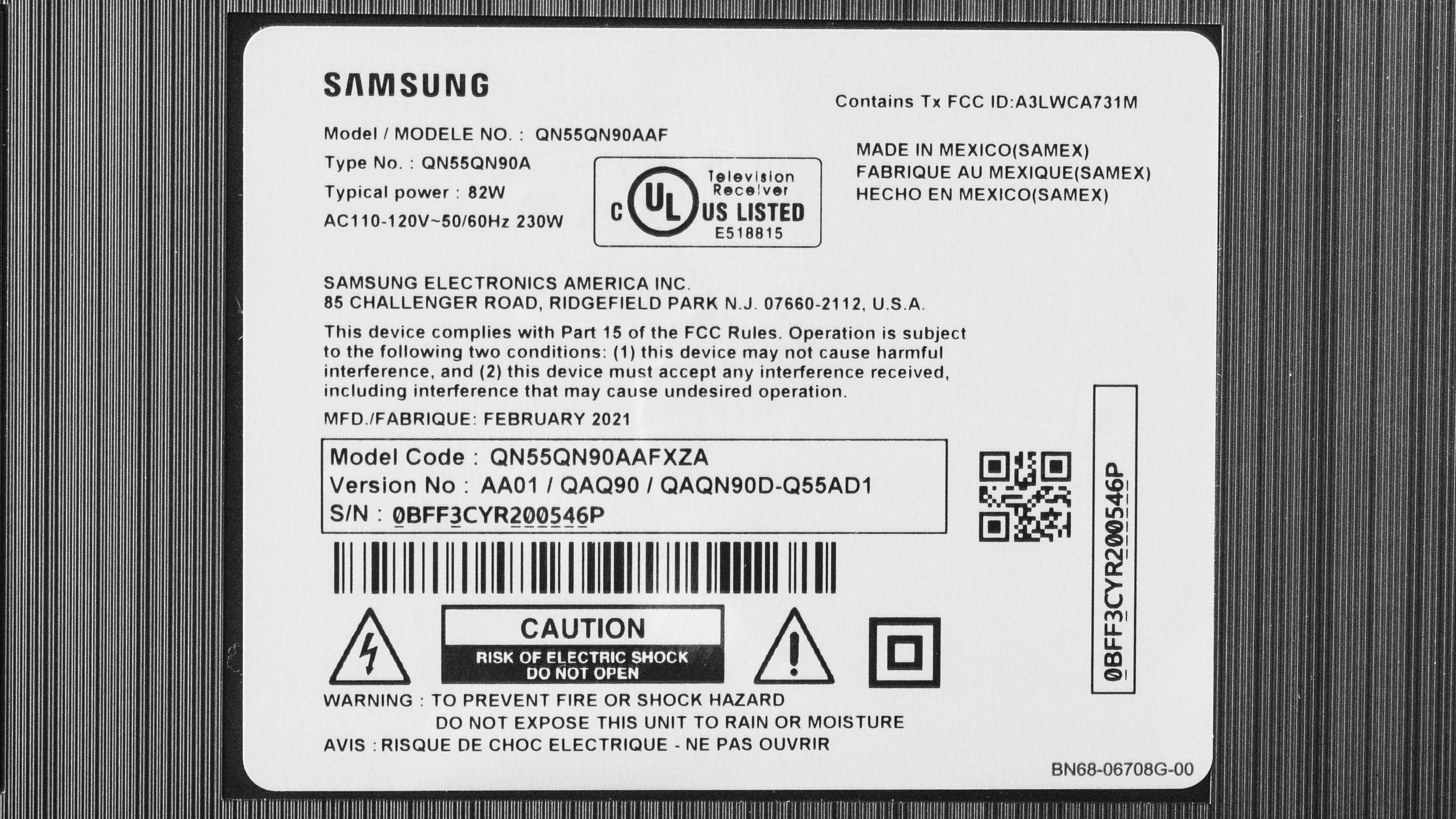 Our unit of the QN90A was manufactured in February 2021; you can see the label here. You can also see a picture of our service menu here.