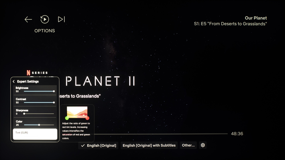 For our upscaling test, we set Sharpness to '5.' Sharpness processing was calibrated with no over-sharpening for low-resolution content.