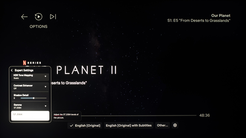 The TV supports HDR10+ from native apps and external devices. As with normal HDR content, when you start playing HDR10+ content, some settings change automatically. Since we don't specifically test HDR10+, we don't have exact settings for it, but they should be the same as our HDR10 settings.